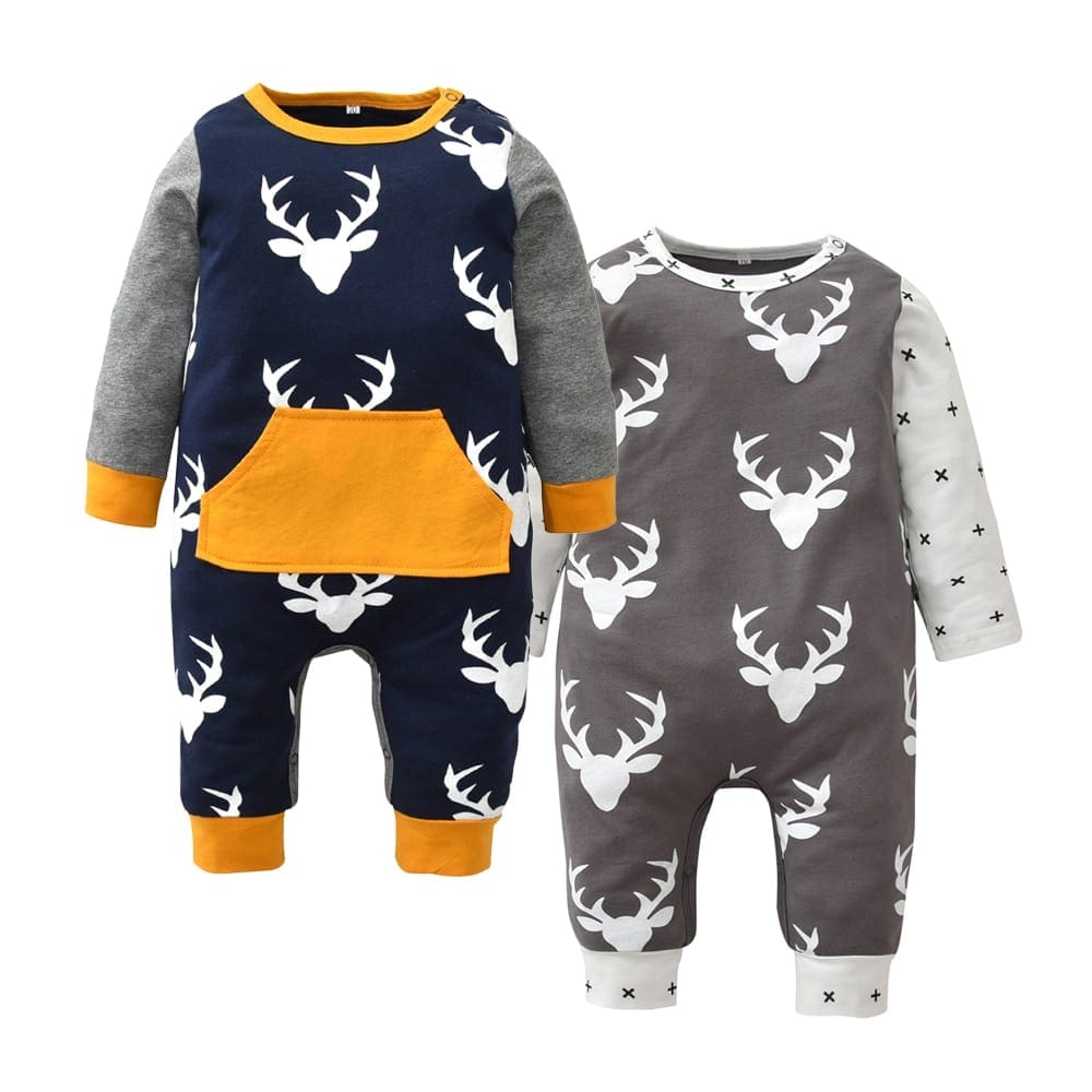 Barboteuse rouge cerf de Noël unisexe pour les bébés garçons et filles de 0 à 18 mois