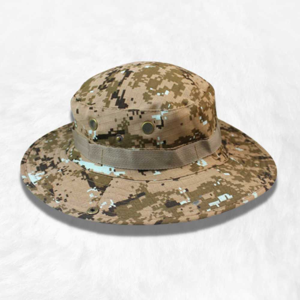 Le bob avec fil au motif camouflage pixel est un chapeau très à la mode. Il est fait de coton et est ornée de petits carrés de différentes teintes formant un camouflage pixelisé.