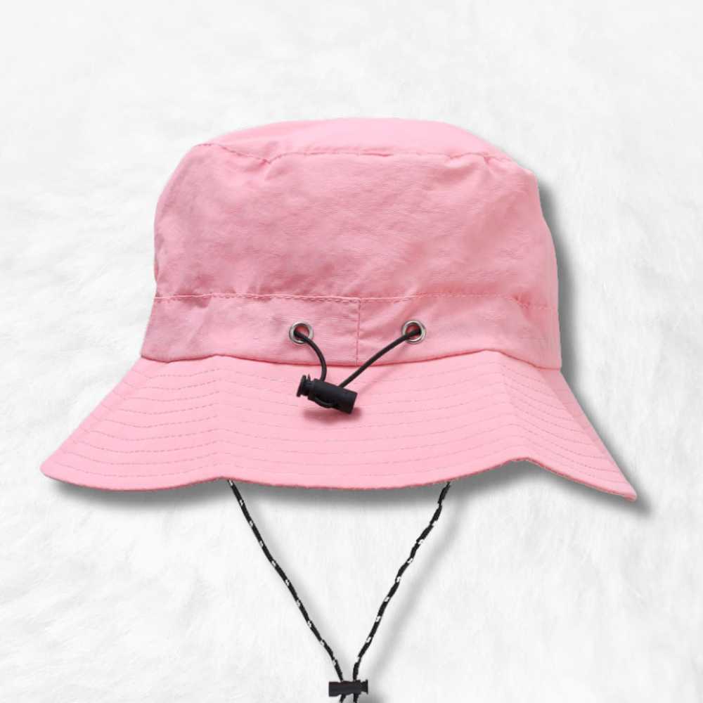Son troisième atout est représenté par ses ficelles réglables. Vous pourrez garder aisément le bob sur votre tête, même lors de rafale de vent grâce à sa ficelle inférieure (au niveau du cou). Le second cordon supérieur quant à lui, vous permet de régler la taille du tour de tête pour une dimension réglable « sur mesure ».