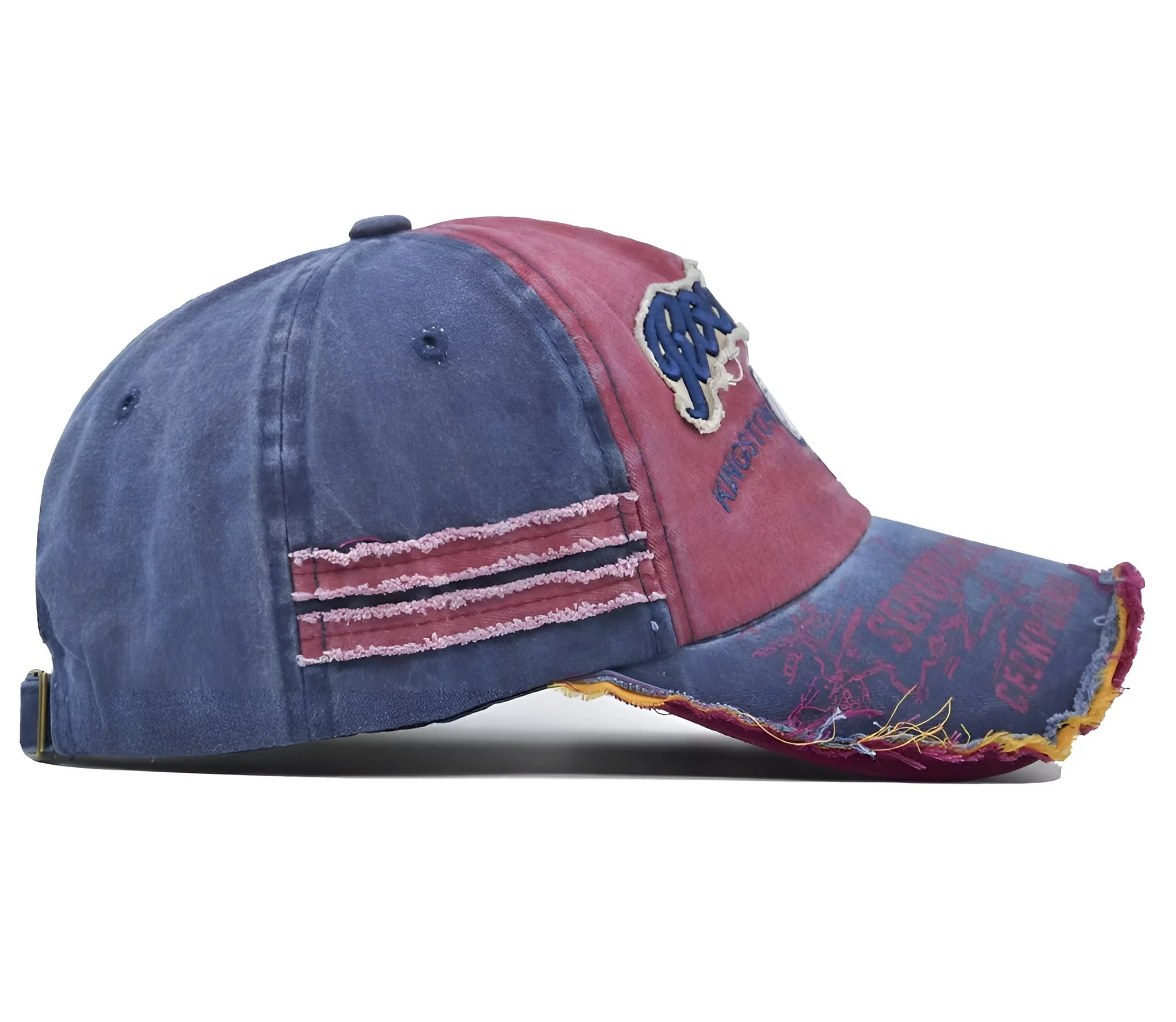 Adoptez un look rétro avec la casquette Retro, au design usé et aux broderies détaillées. Son style patchwork et ses finitions déchirées lui confèrent un caractère unique. Parfaite pour un look urbain et décontracté.