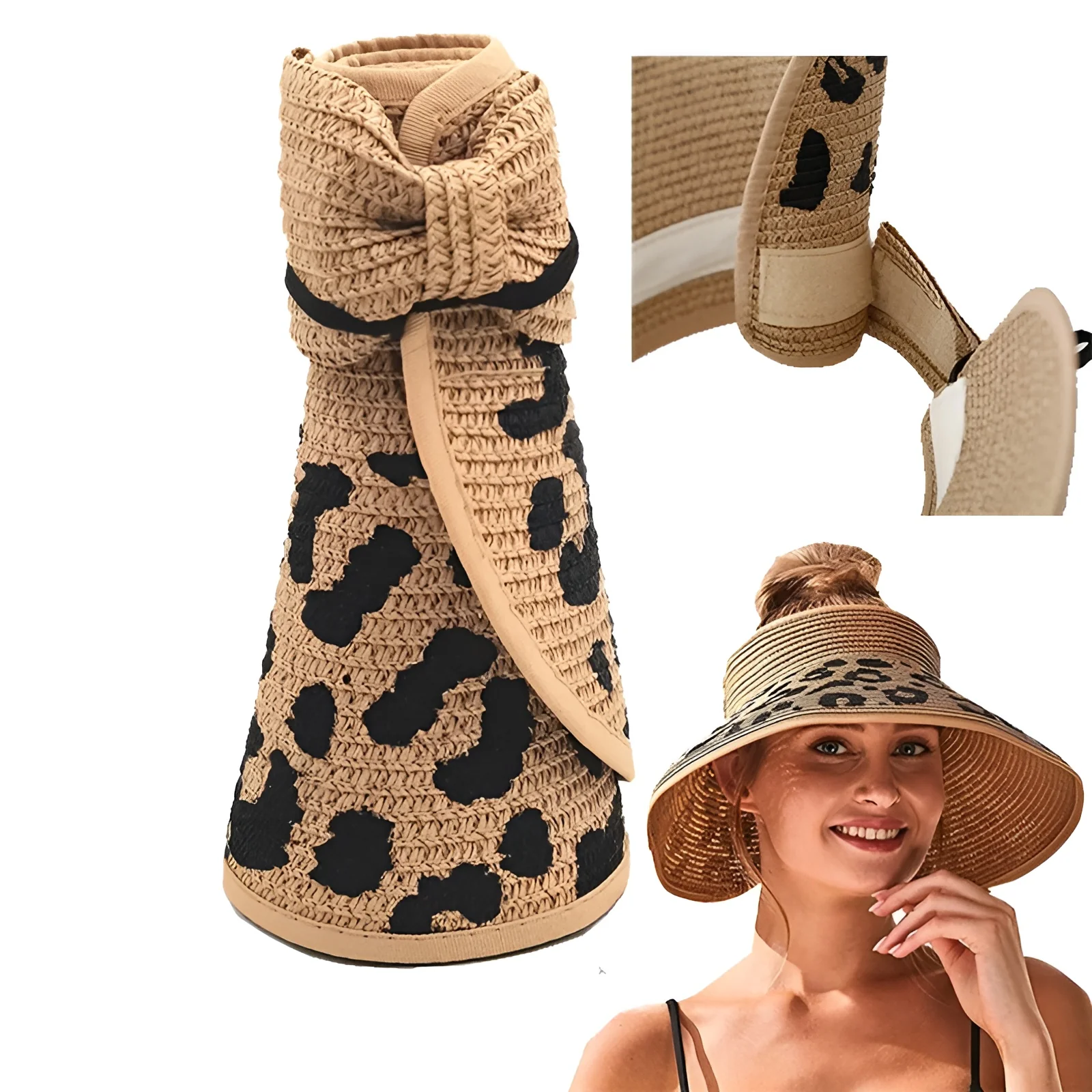 Avec son imprimé sauvage et sa coupe ouverte à l’arrière, ce chapeau de paille femme apporte une touche de caractère à vos tenues estivales. Sa forme rigide et sa visière large assurent une bonne protection solaire tout en sublimant votre style.