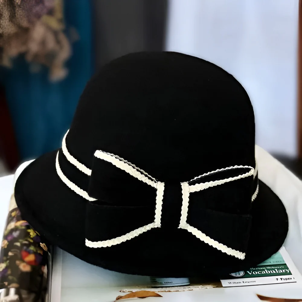 Chapeau Melon Cloche Femme Noeud Hiver