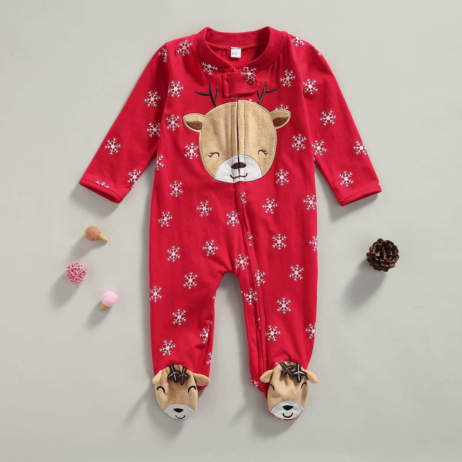 Barboteuse rouge cerf de Noël unisexe pour les bébés garçons et filles de 0 à 18 mois
