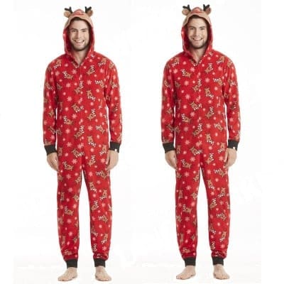 Avec cette combinaison pyjama de Noël avec capuche renne, toute la famille pourra être assortie pour un super moment de joie ensemble. Pour le papa ou la maman, ou les enfants, chacun à sa taille et sa coupe. La capuche est bien originale avec la tête et les oreilles d’un renne. Le tout en coton pour avoir bien chaud lors de votre veillée de Noël.