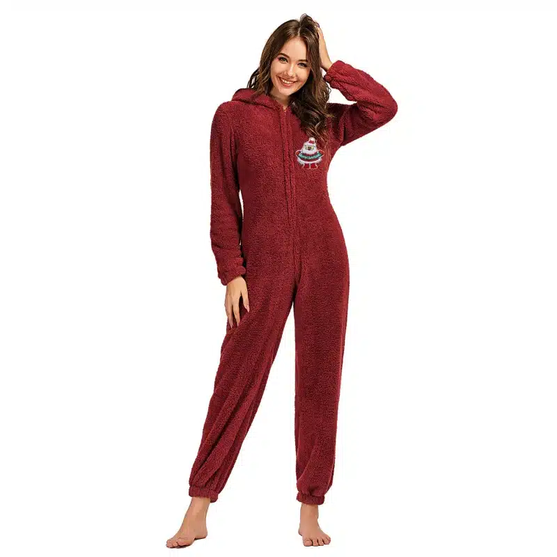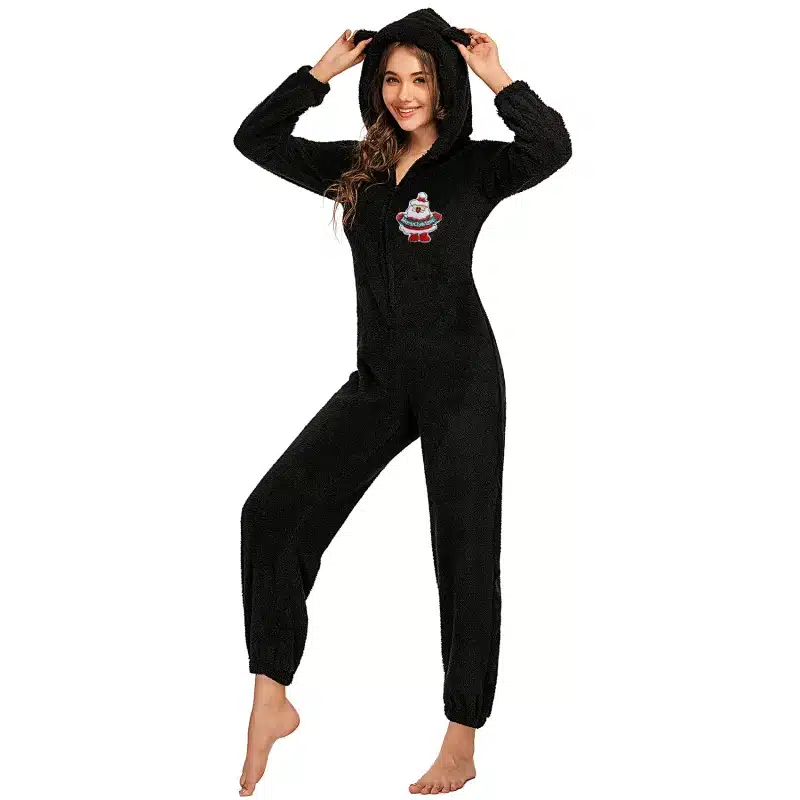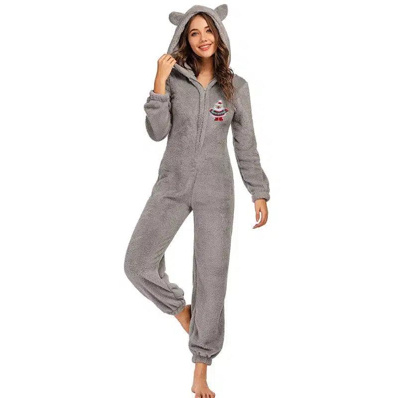 Mesdames et mesdemoiselles, voici une combinaison pyjama en polaire pour passer de douces nuits. Elle se distingue grâce à un petit logo sur la poitrine et une capuche originale. Une fermeture éclair et des élastiques de serrage aux extrémités sont aussi présents pour offrir une satisfaction totale. Elle se décline en différentes couleurs pour s’accorder à votre style et votre humeur. La combinaison est parfaite pour être à la mode et au chaud pendant les périodes les plus fraîches.