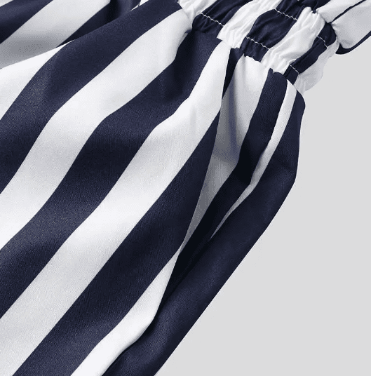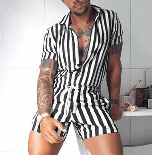 Ce nouveau combishort rayé pour homme s’inspire du motif marin bleu et noir. Cette version de pyjama est courte aux jambes et propose une ouverture ventrale en boutons ainsi qu’un coton extra-doux. Portez-le avec des sandales plates pour un look décontracté ou des chaussures habillées pour un look plus chic. Ce combishort rayé pour homme est une pièce essentielle pour toute garde-robe moderne.