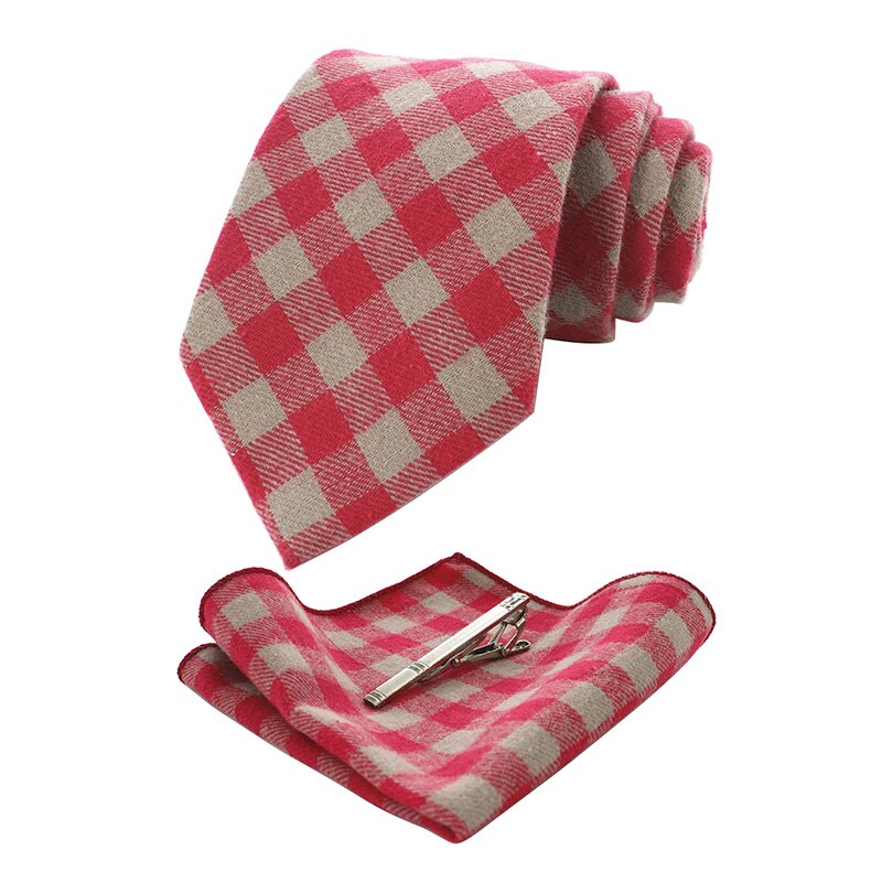 Le motif de la cravate se compose de carreaux rouge éclatant assortis de blanc nuageux, pour un style qui attire le regard.