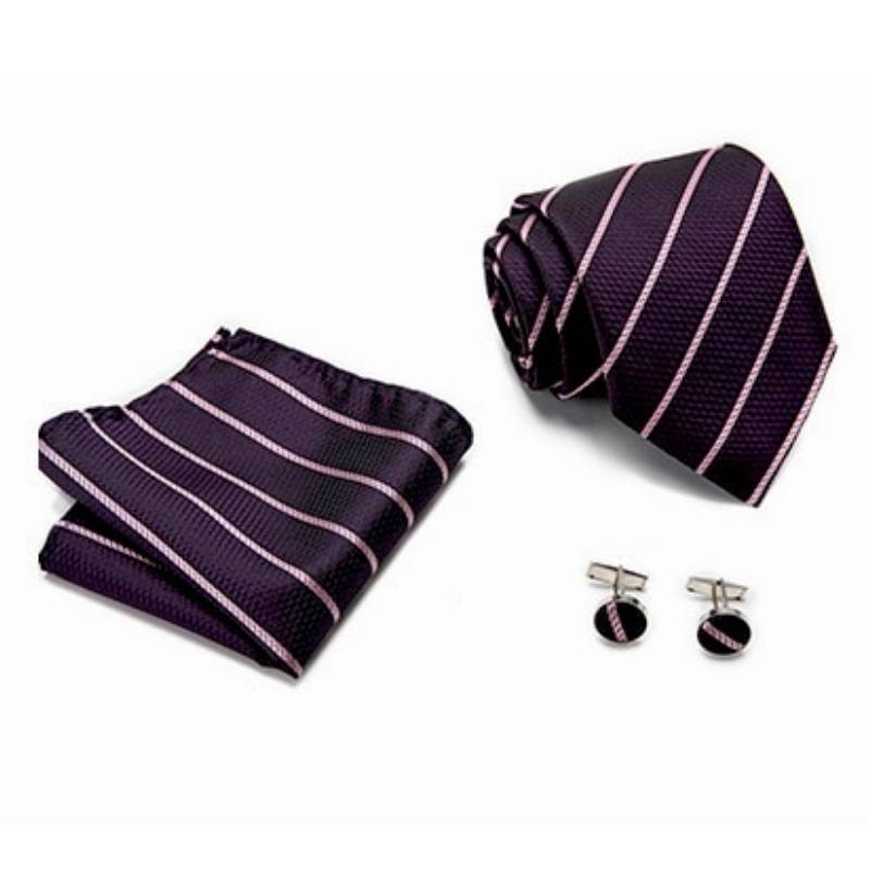 Découvrez notre élégante cravate en soie pourpre à lignes roses
