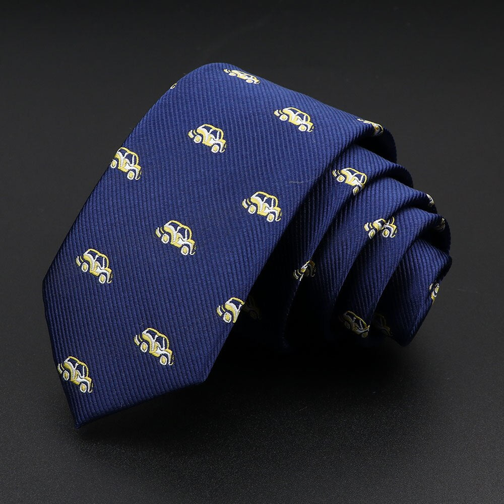 Découvrez notre élégante cravate ornée de motifs automobiles, conçue pour la longévité et une allure impeccable.