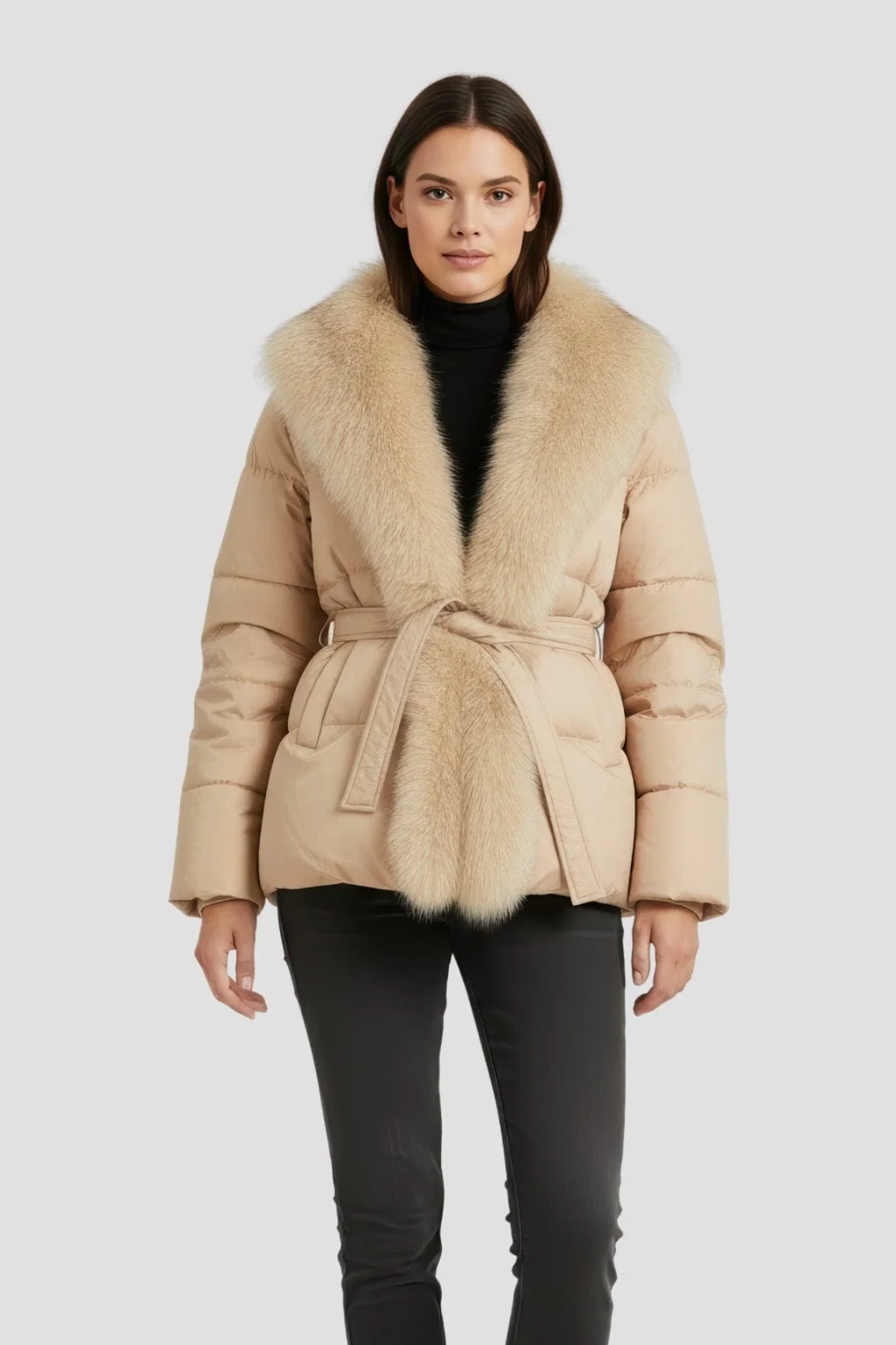 Pensée pour un vestiaire lumineux, la doudoune fourrure femme beige conjugue port confortable et présence discrète. Le jeu des beiges, tissu mat et col naturel, crée un relief subtil qui modernise chaque tenue, du tailoring clair au denim brut.
