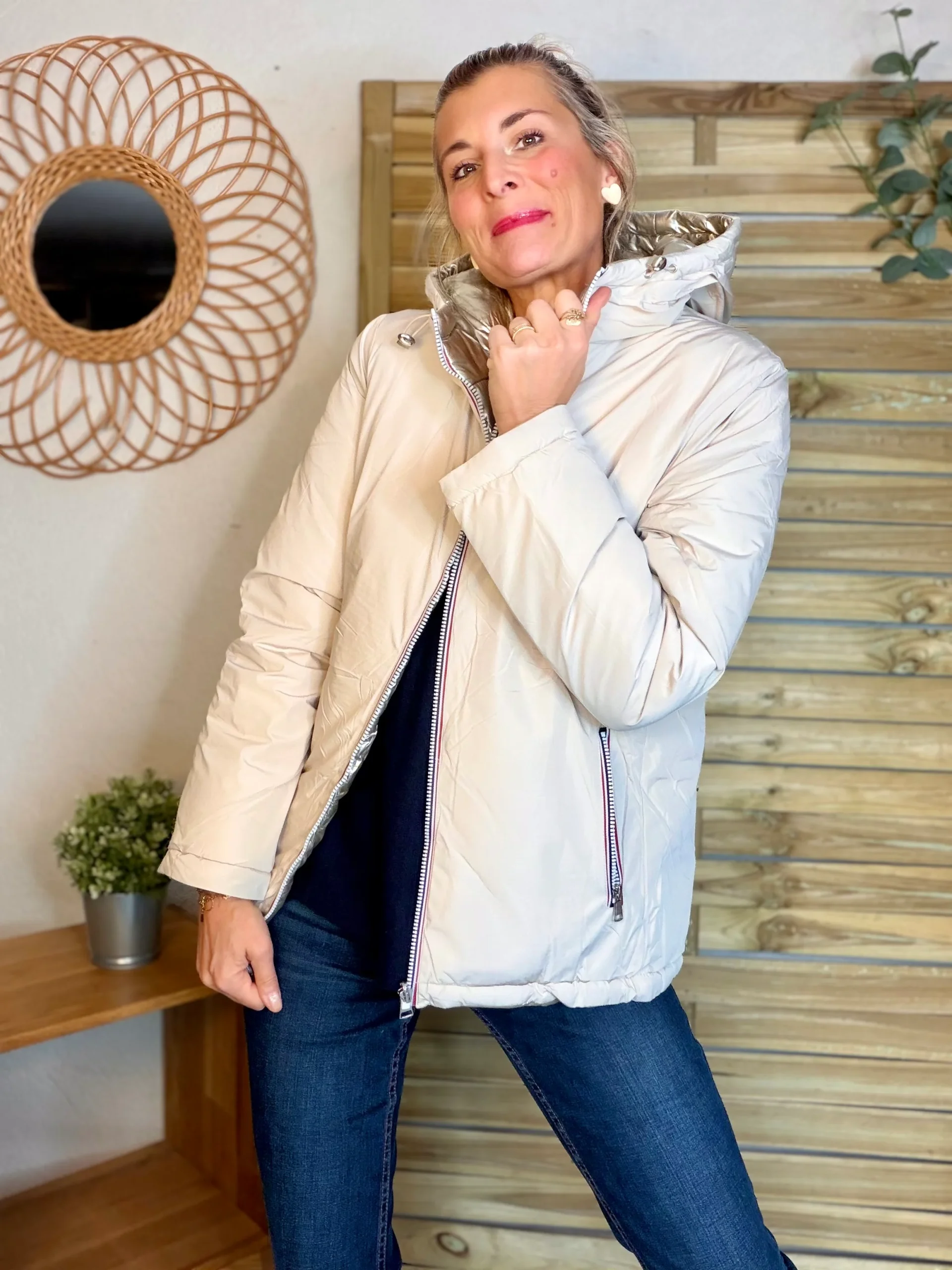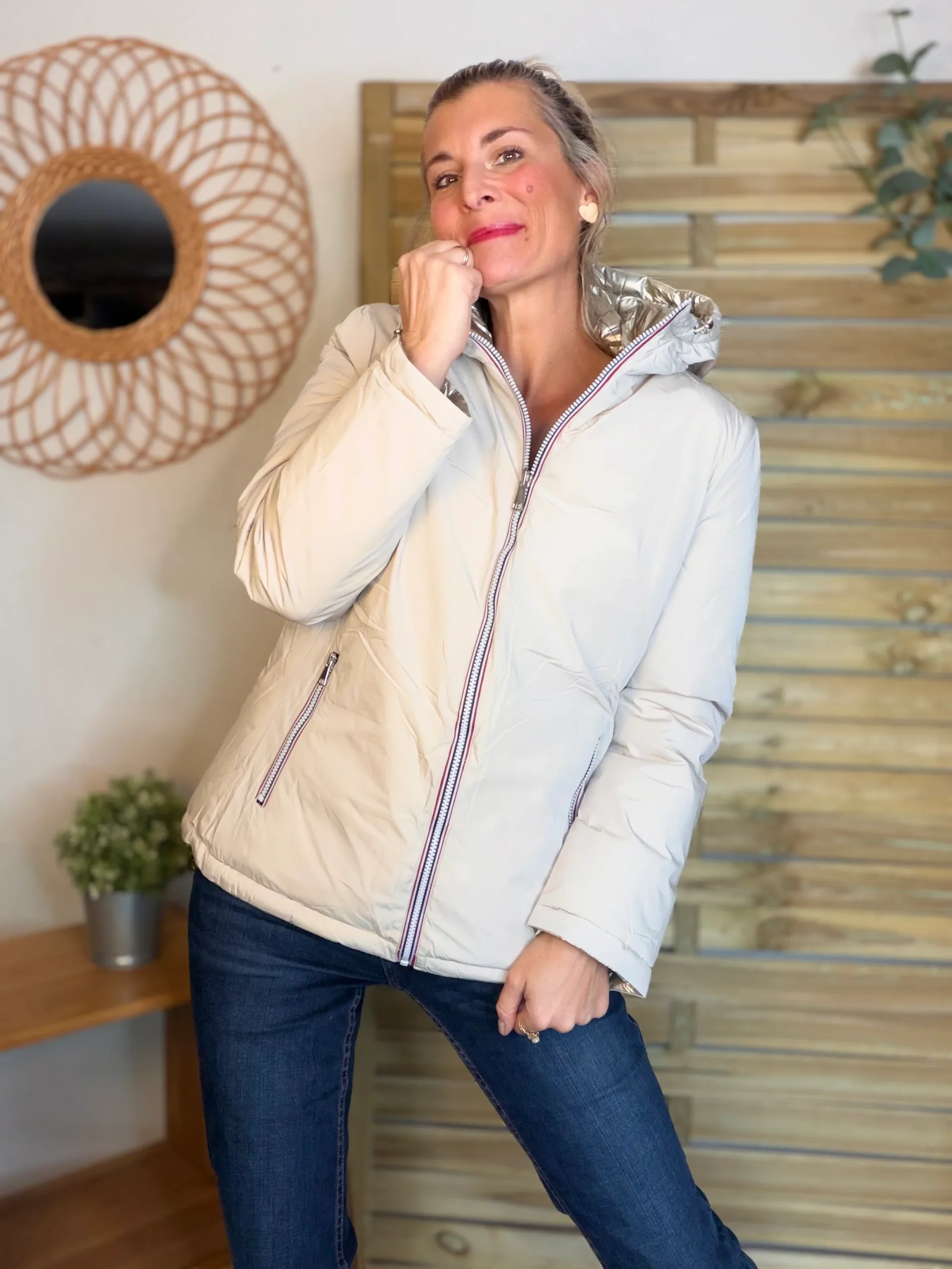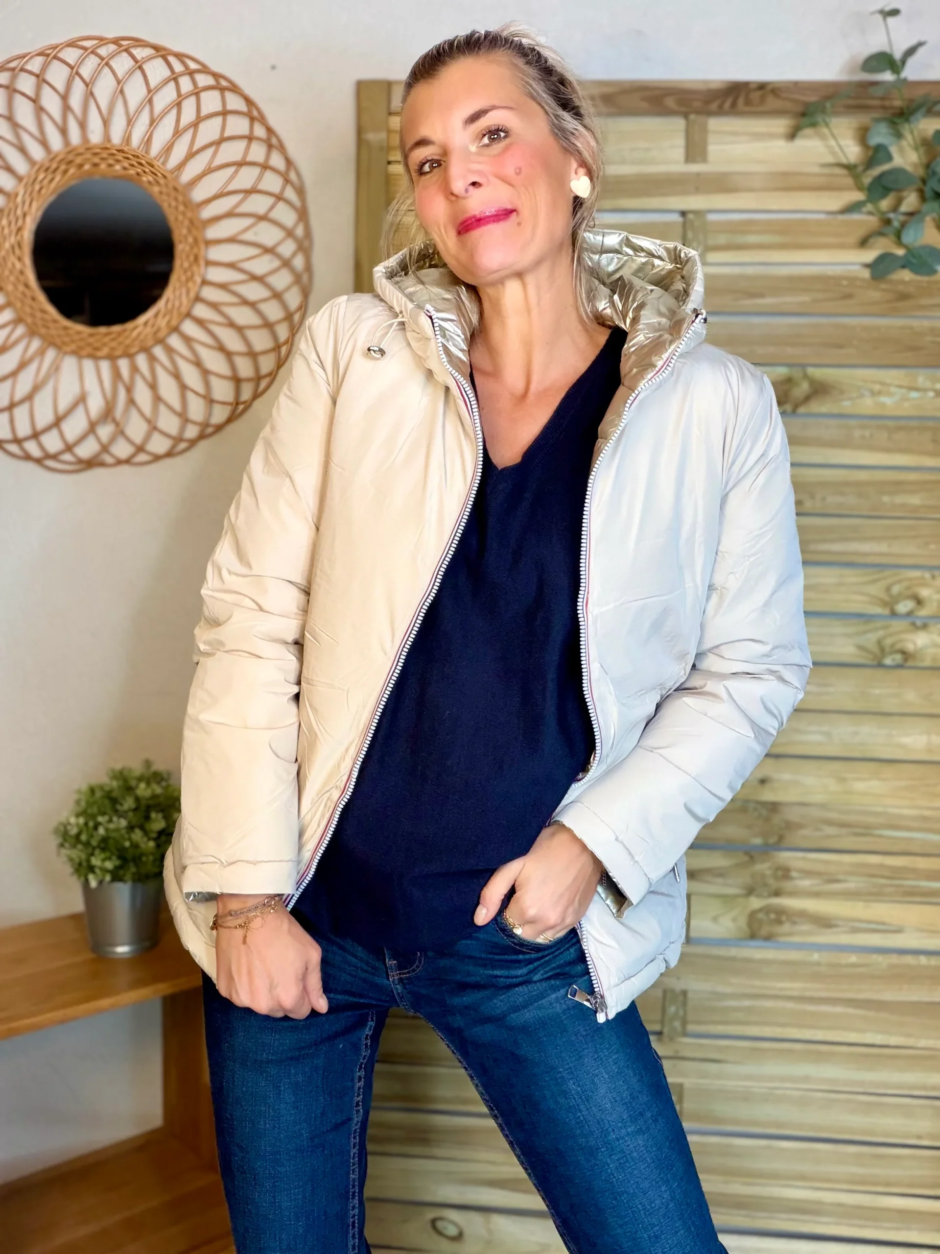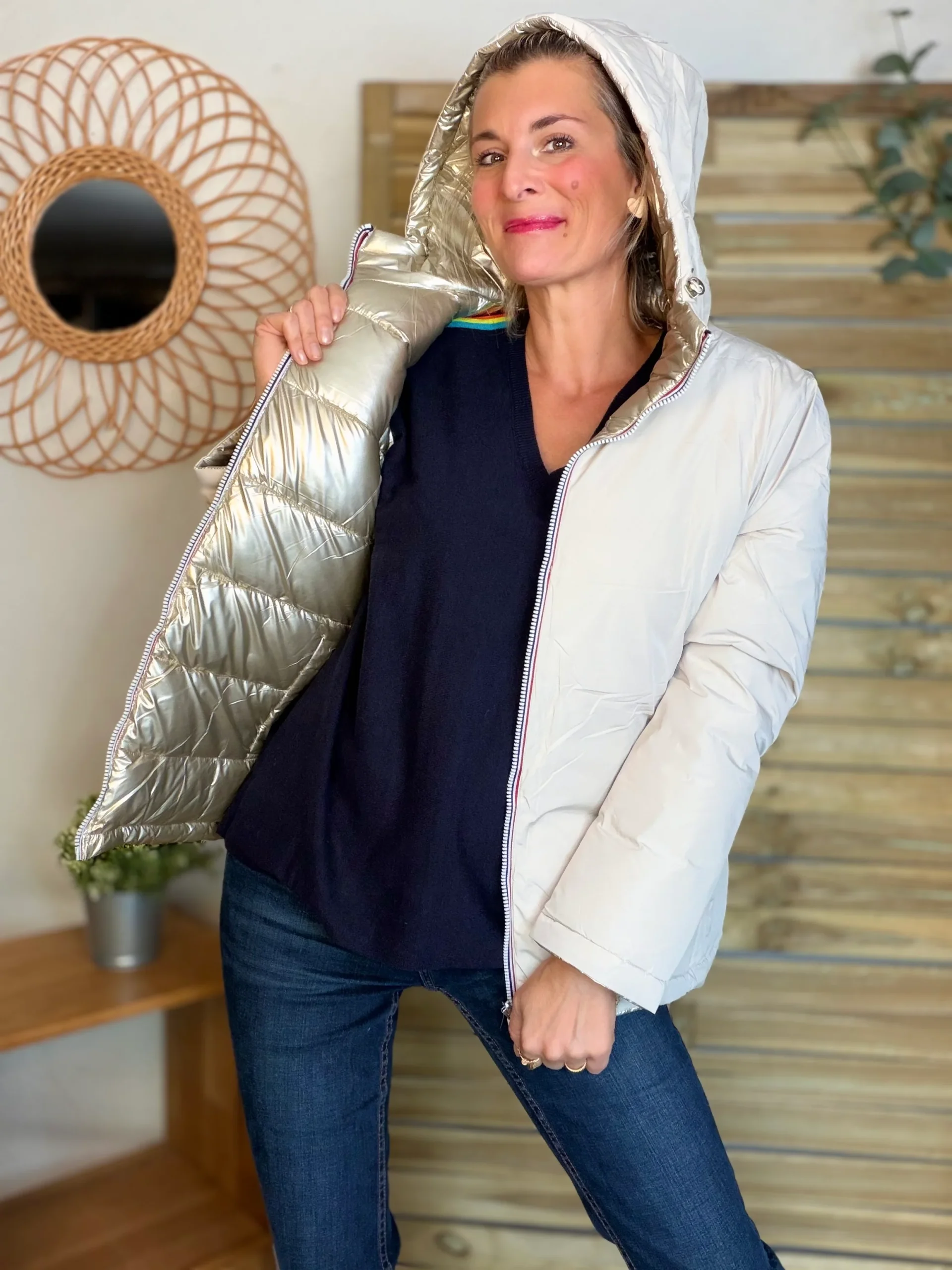 Doudoune imperméable réversible courte matelassée (coté doré)