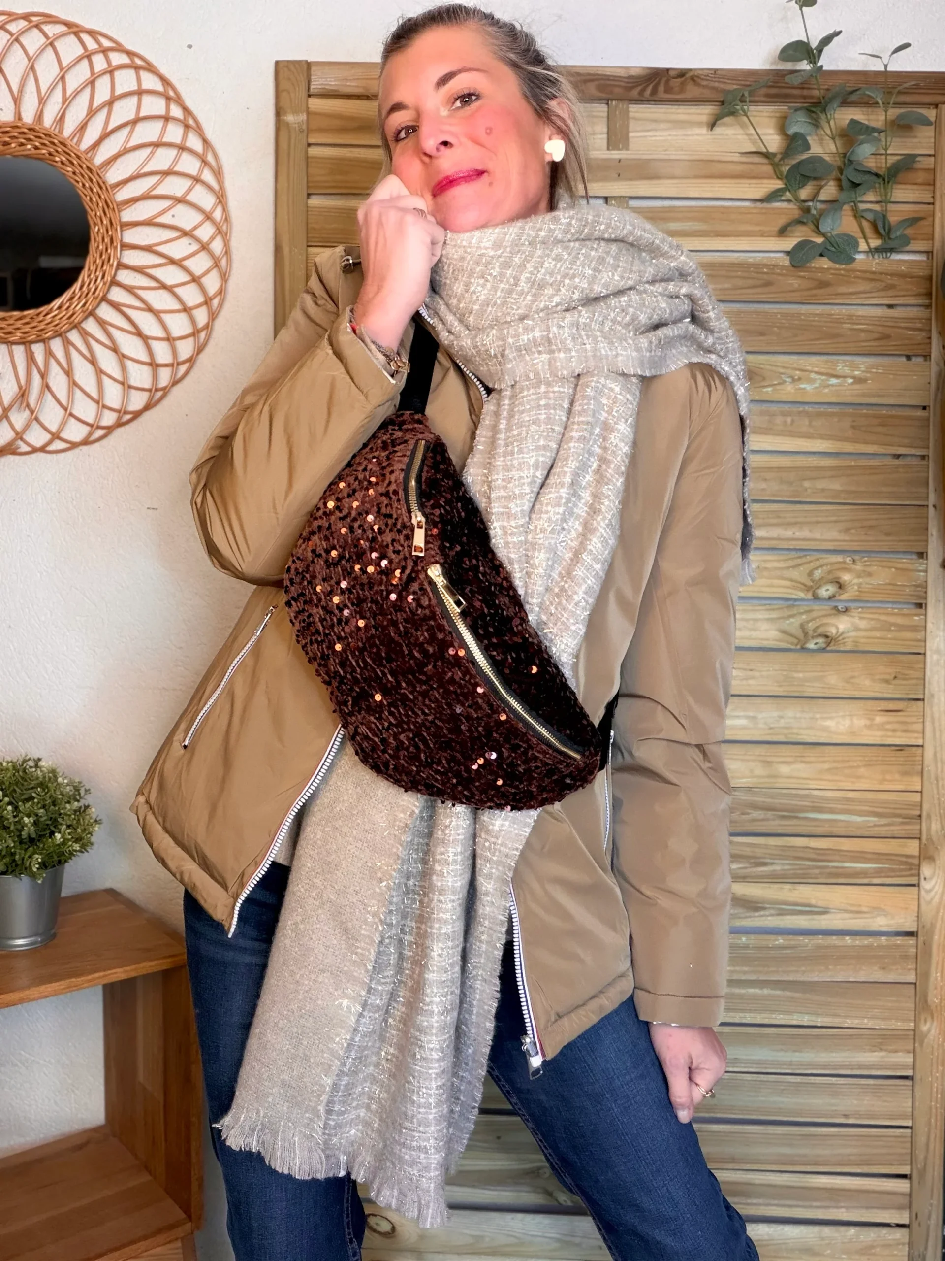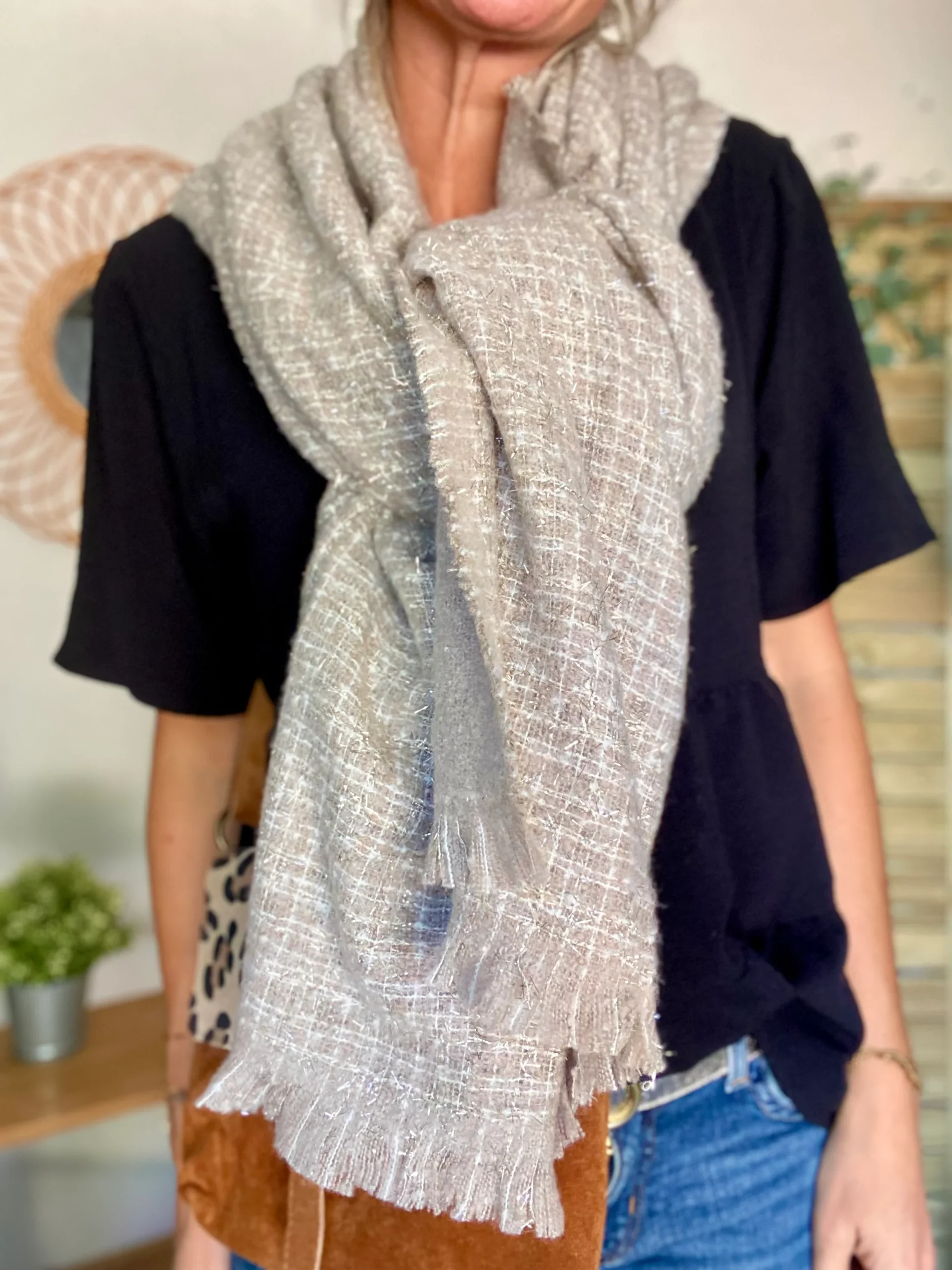 Écharpe douce avec lurex MARCELLE – Taupe (6 coloris)