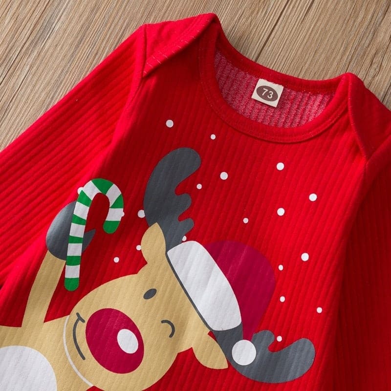 Assurez un premier Noël mémorable à votre petit ange avec cet adorable ensemble de Noël ! Une tenue d’une grande douceur et chaleur, avec un joli imprimé renne, un bonnet et un pantalon confortable. Célébrez l’esprit des fêtes avec ce vêtement pratique et tendance, disponible en différentes tailles et lavable en machine. Offrez à votre bébé ce mignon et unique ensemble 3 pièces imprimé d’un cerf !
