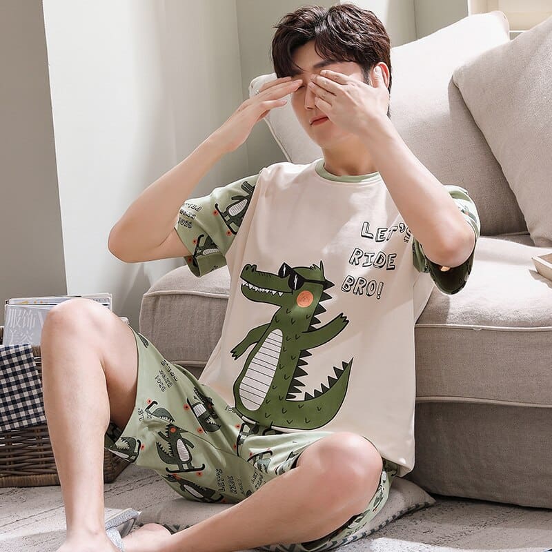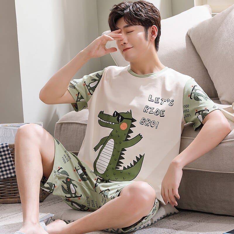 Un pyjama tout en élégance avec ce délicat imprimé crocodile ! Cet ensemble d’été manches à courtes pour monsieur est réalisé en coton. Un réel confort pour les nuits d’été un peu trop chaudes… La coupe droite et le tissu léger en font une pièce parfaite pour les journées chaudes d’été. Le short assorti est doté d’une taille élastiquée pour plus de confort et de liberté de mouvement. Les poches latérales et la coupe ample ajoutent une touche décontractée à ce look. Portez cet ensemble manches courtes pour créer un look estival frais et branché.