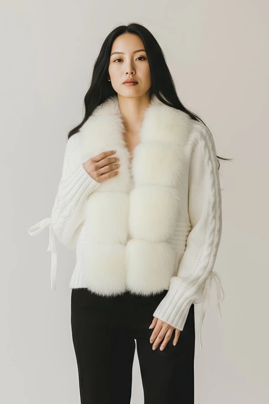 Le gilet fourrure femme blanc séduit par la pureté de sa teinte et la richesse de sa texture. Le col et les poignets recouverts de fourrure offrent un volume harmonieux et un toucher soyeux, tout en apportant une chaleur agréable.