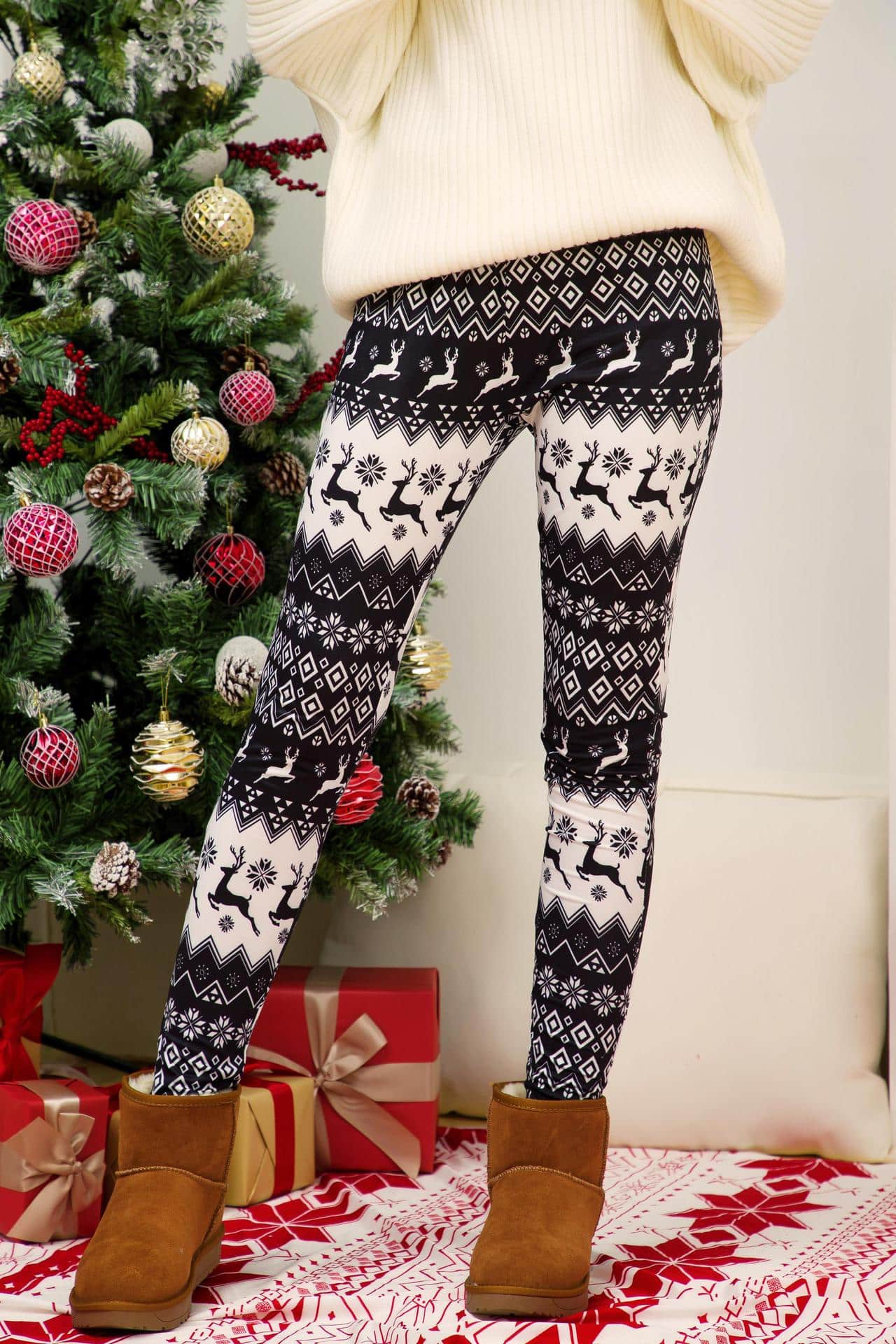 Leggings Noir et Blanc de noël imprimé pour femmes