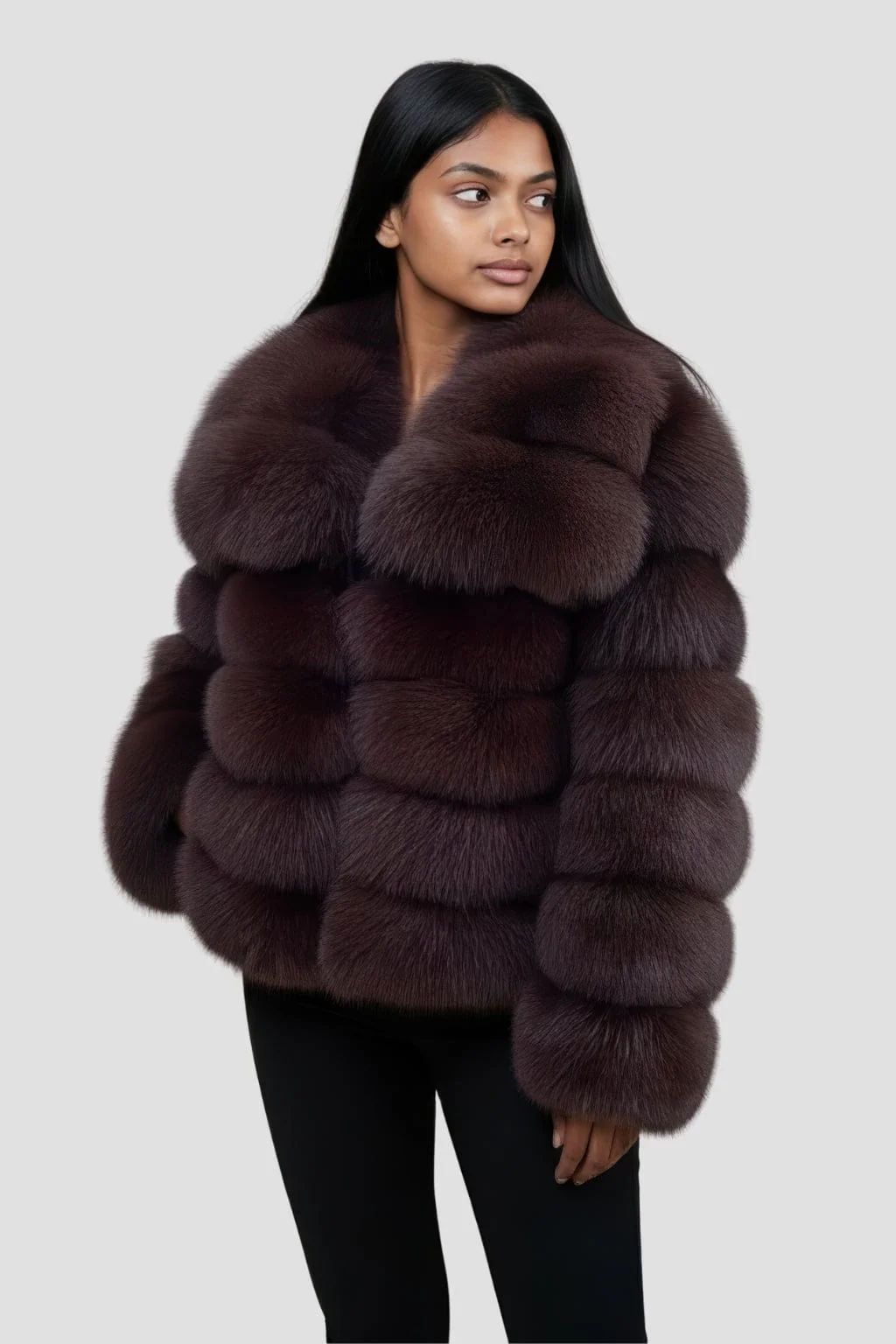 Pour une touche de chaleur supplémentaire dans les mêmes nuances, vous pourriez apprécier notre manteau fourrure femme marron, un modèle raffiné doté cette fois de manches longues.