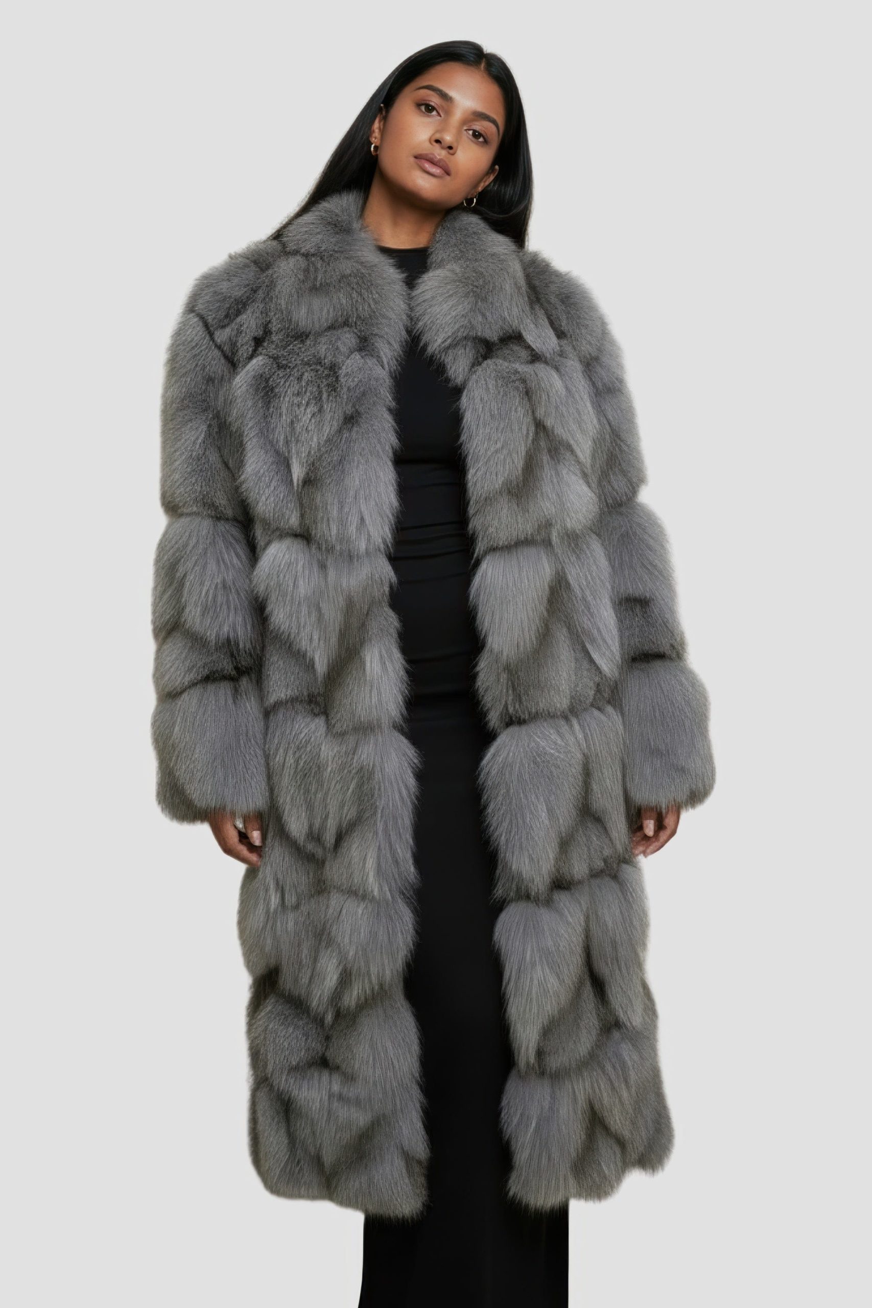 Élégant et raffiné, le manteau fourrure femme renard gris se distingue par son allure moderne et son confort naturel. Une pièce intemporelle qui conjugue féminité et sophistication.