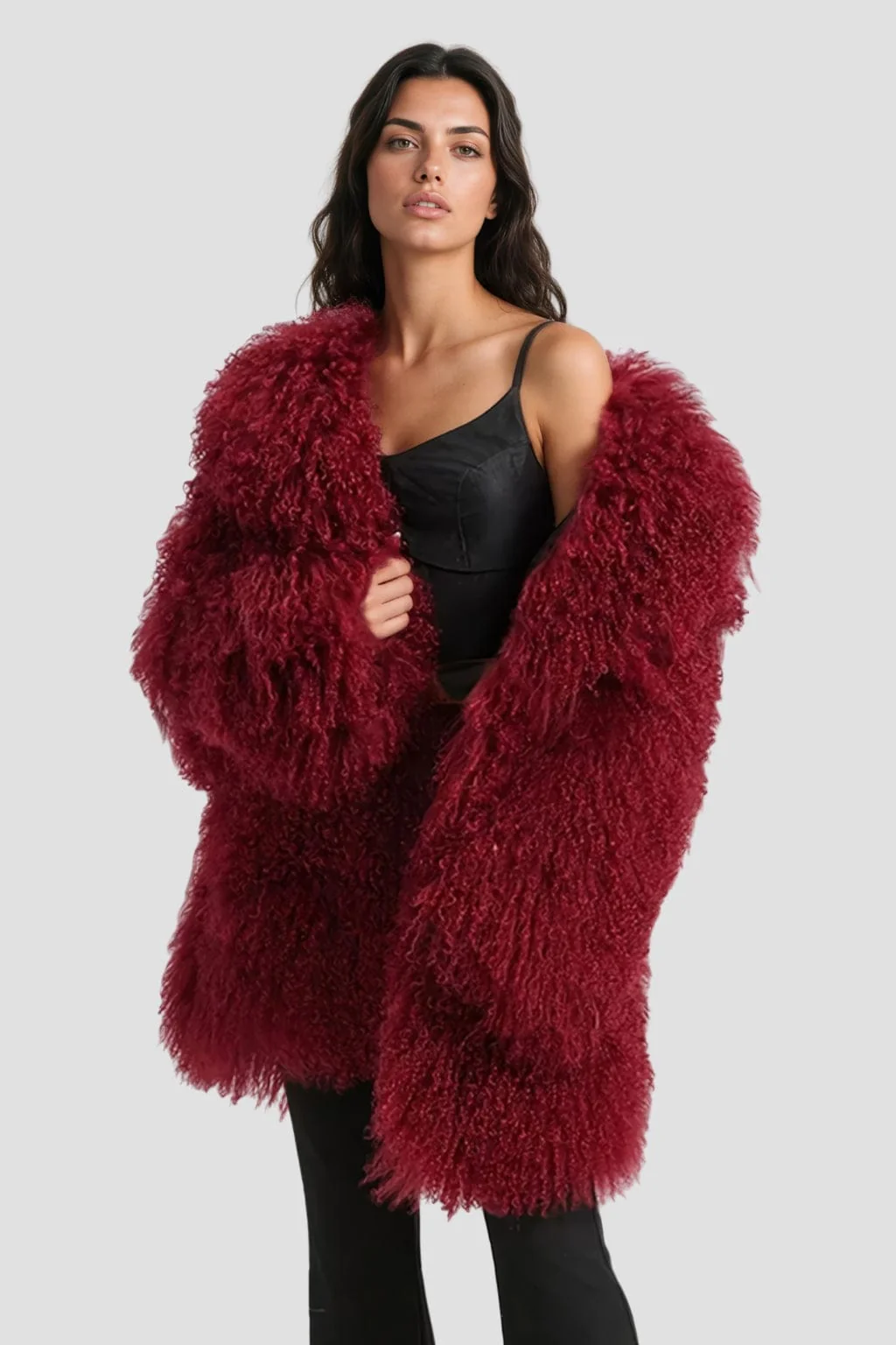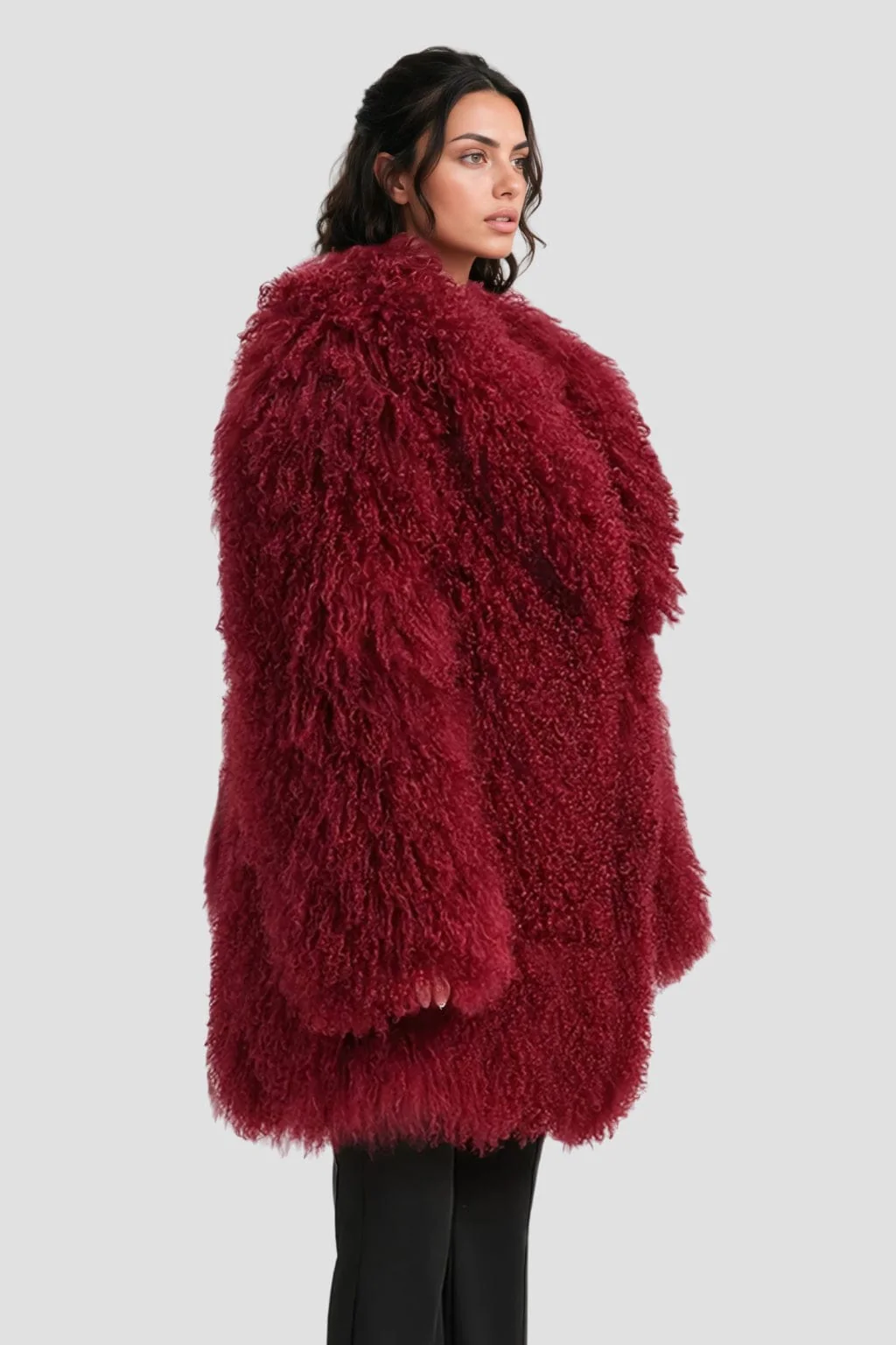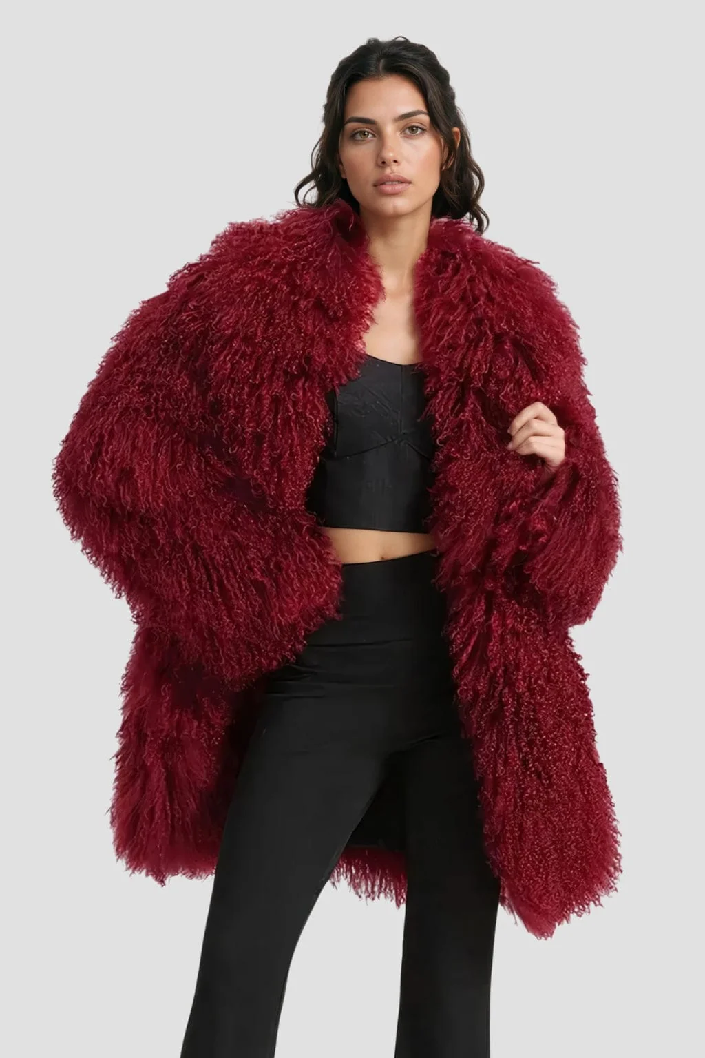 Sa teinte rouge profonde en fait un vêtement à forte personnalité, idéal pour se démarquer avec style. Le manteau fourrure mouton rouge séduit par son esprit moderne et sa coupe longue de 83 cm qui dynamise la silhouette.
