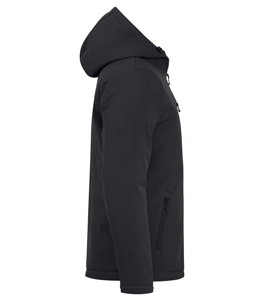 Coupe design pour cette nouvelle softshell capuche doublée – 3 couches : Imperméable / Respirante et coupe-vent – Matelassage pour tenir au chaud – 3 poches externes – Zips SBS – Ouverture intérieure pour faciliter le marquage