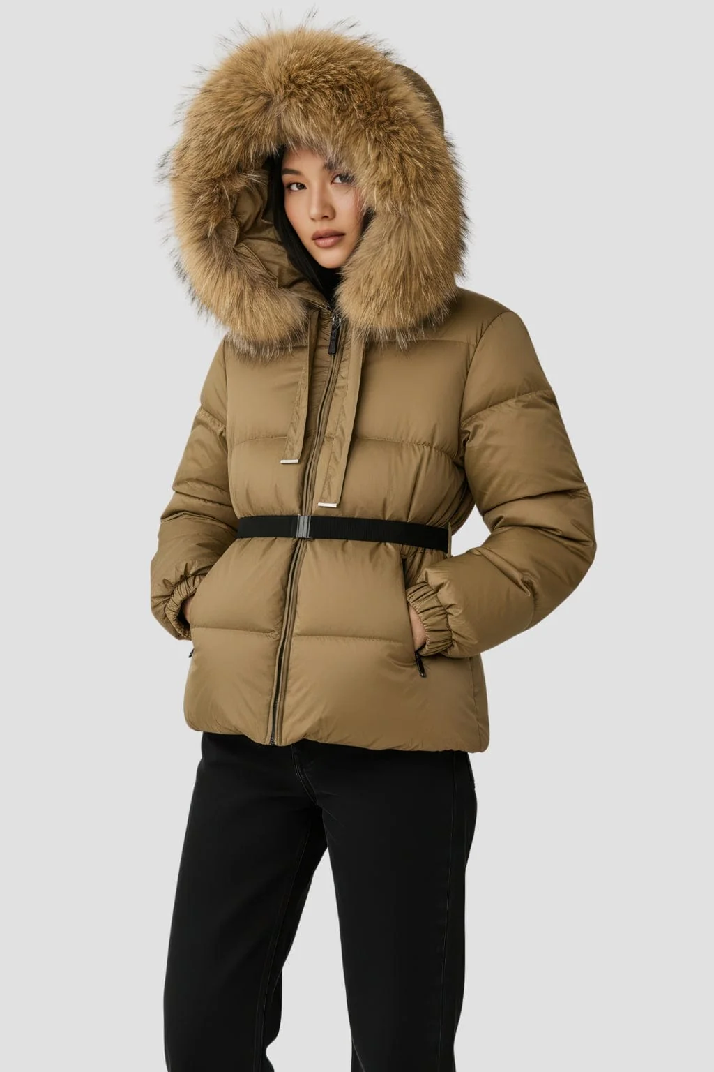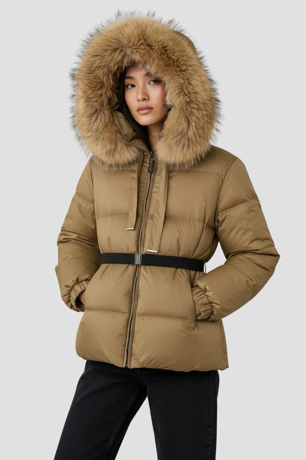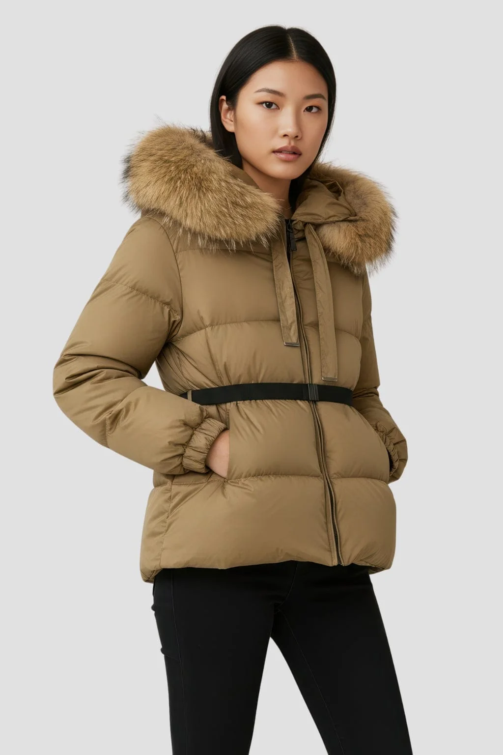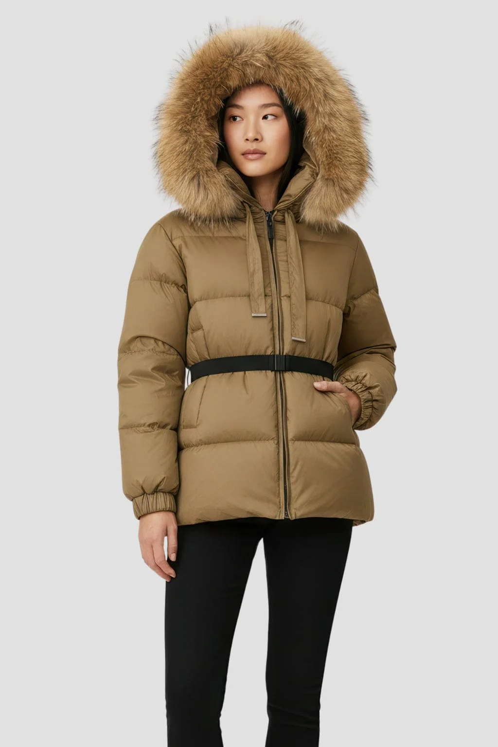 Aérienne et précise, la parka fourrure femme camel unit la chaleur du duvet et une esthétique naturelle. Sa nuance beige-camel illumine les tenues hivernales tout en restant sobre.