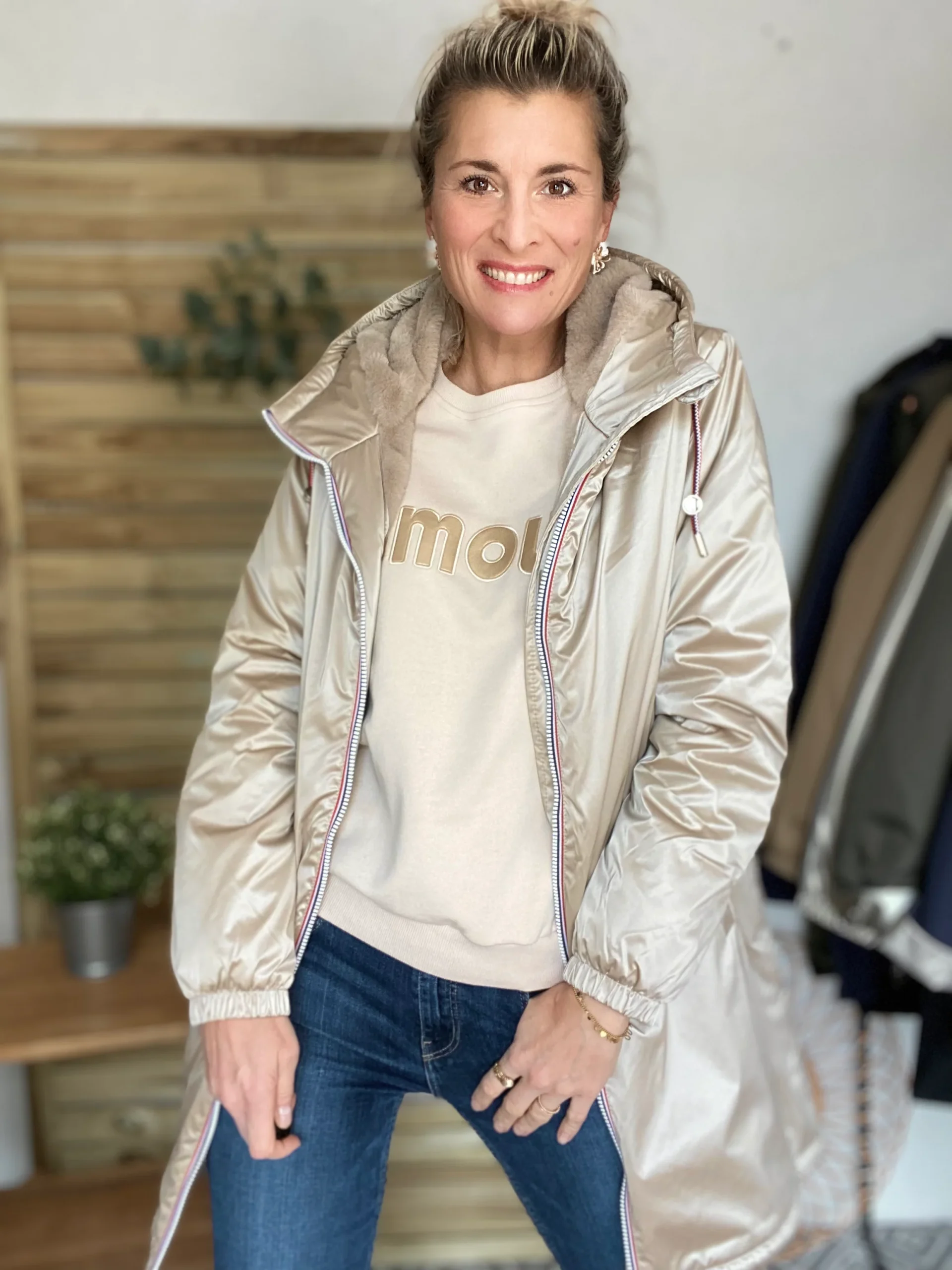 Imperméable long doublé en fausse fourrure avec cordon tricolore Coloris Sable: entre le beige et le doré (sur la dernière photo, j’ai mis Louise en sable et doré côte à côte : la couleur sable est à gauche, le doré est à droite) L’imperméable fourré Laura Jo avec une coupe modernisée pour un look tendance […]