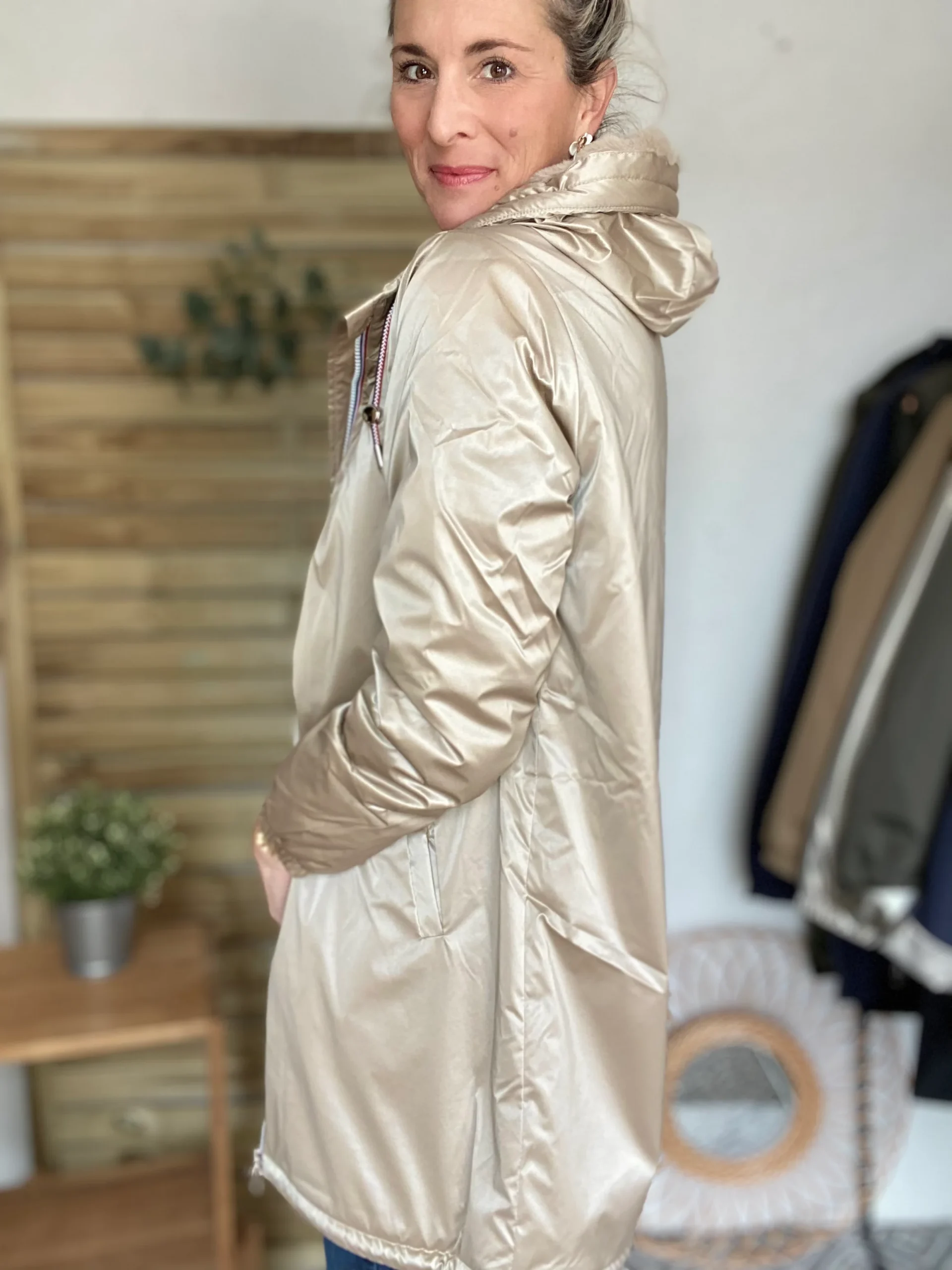 Parka Imperméable THELMA LONG fourrée – Sable irisé – LAURA JO (DÉSTOCKAGE sur Tailles S et 4XL)