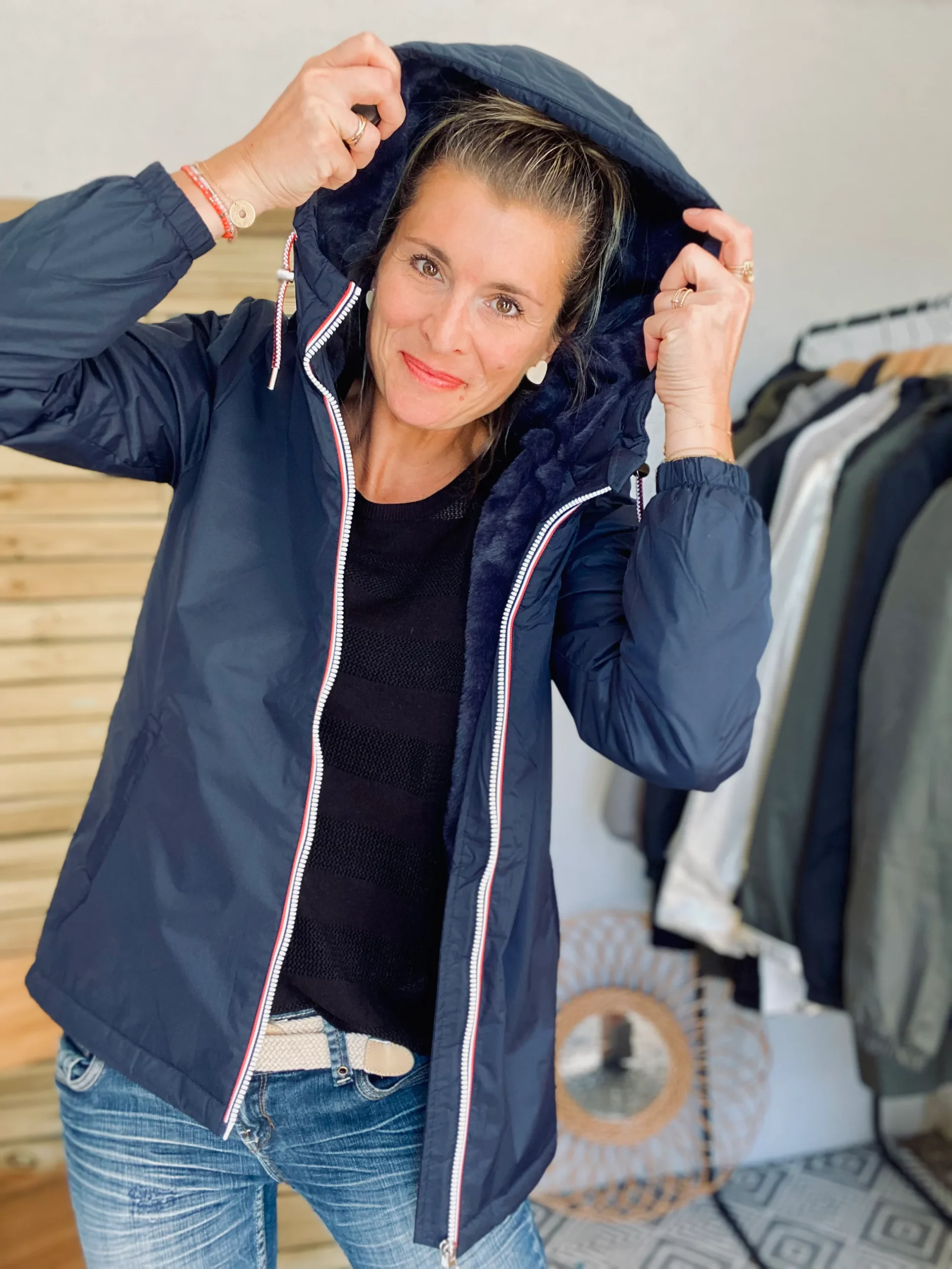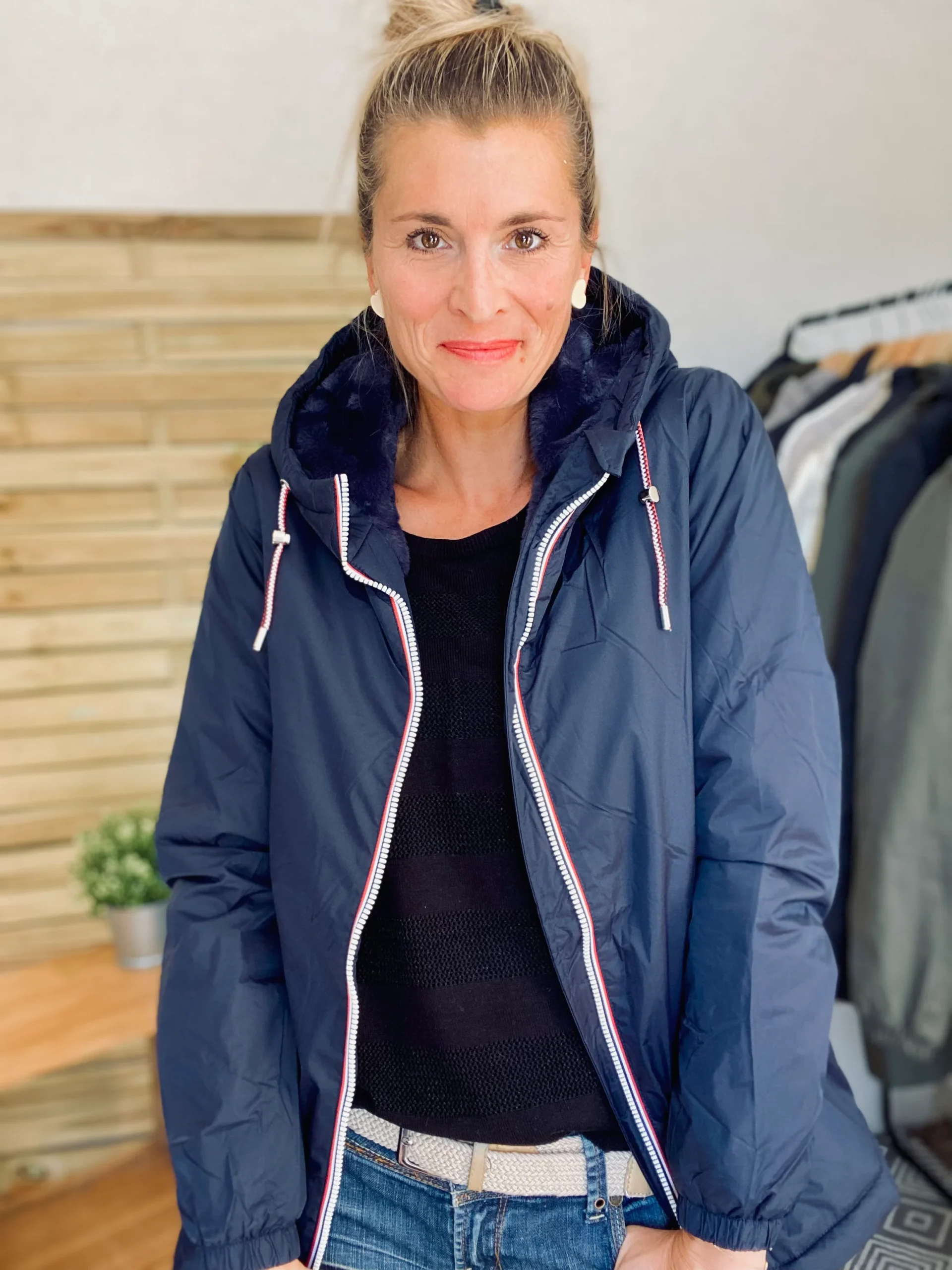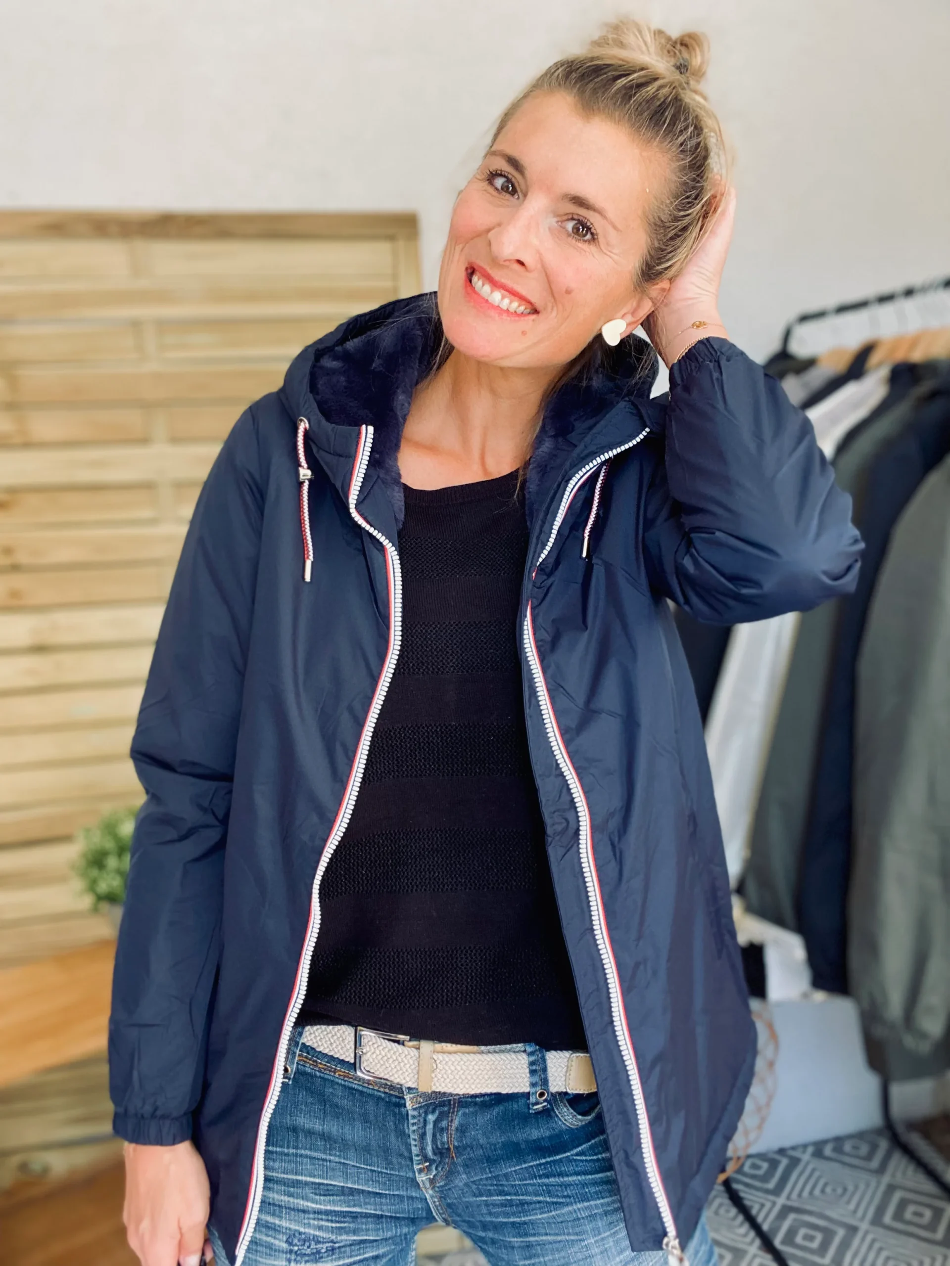 Parka Imperméable THELMA MI-LONG fourré – Bleu marine – LAURA JO