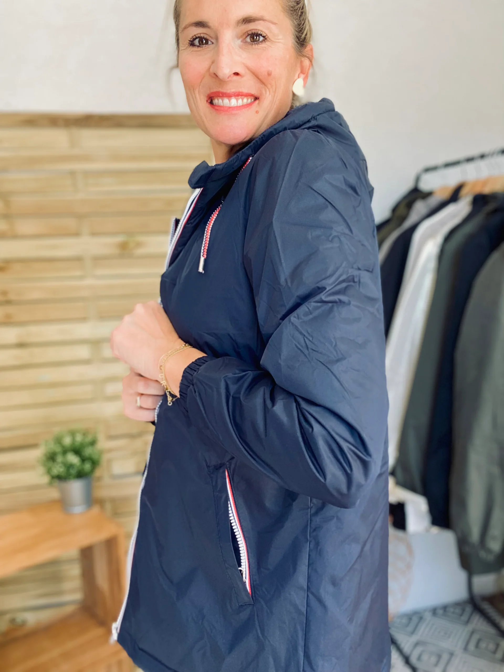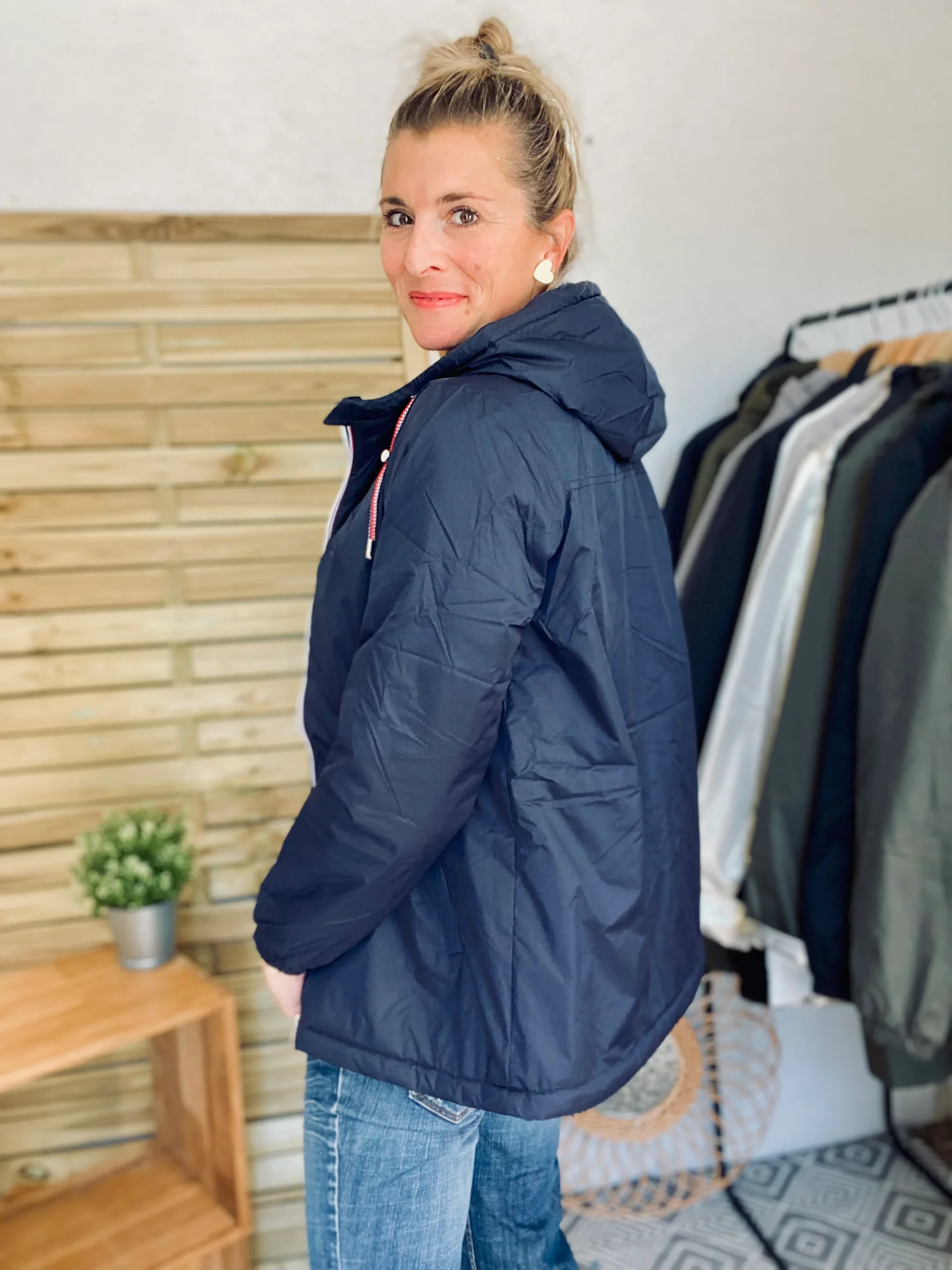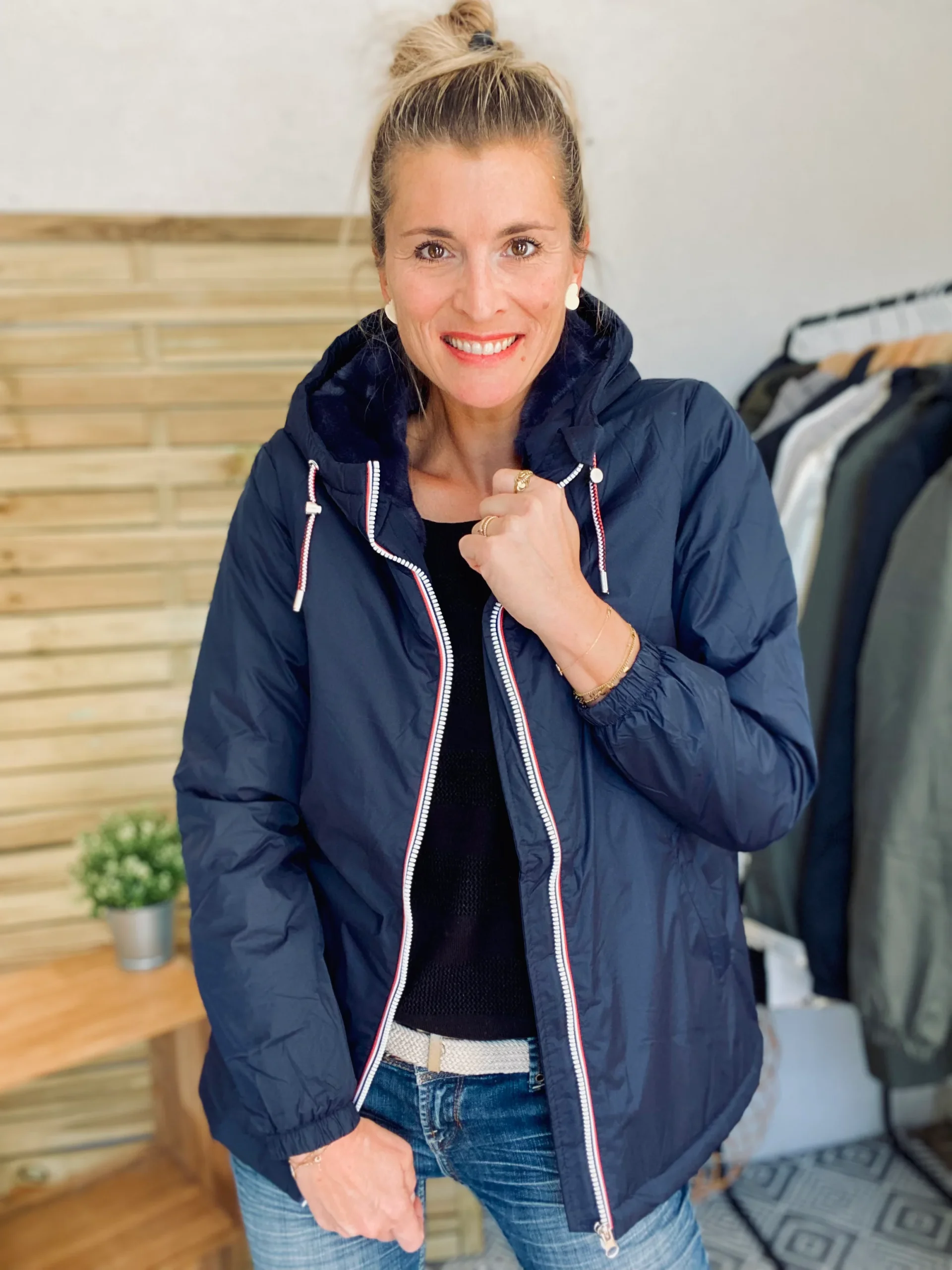 Parka Imperméable THELMA MI-LONG fourré – Bleu marine – LAURA JO