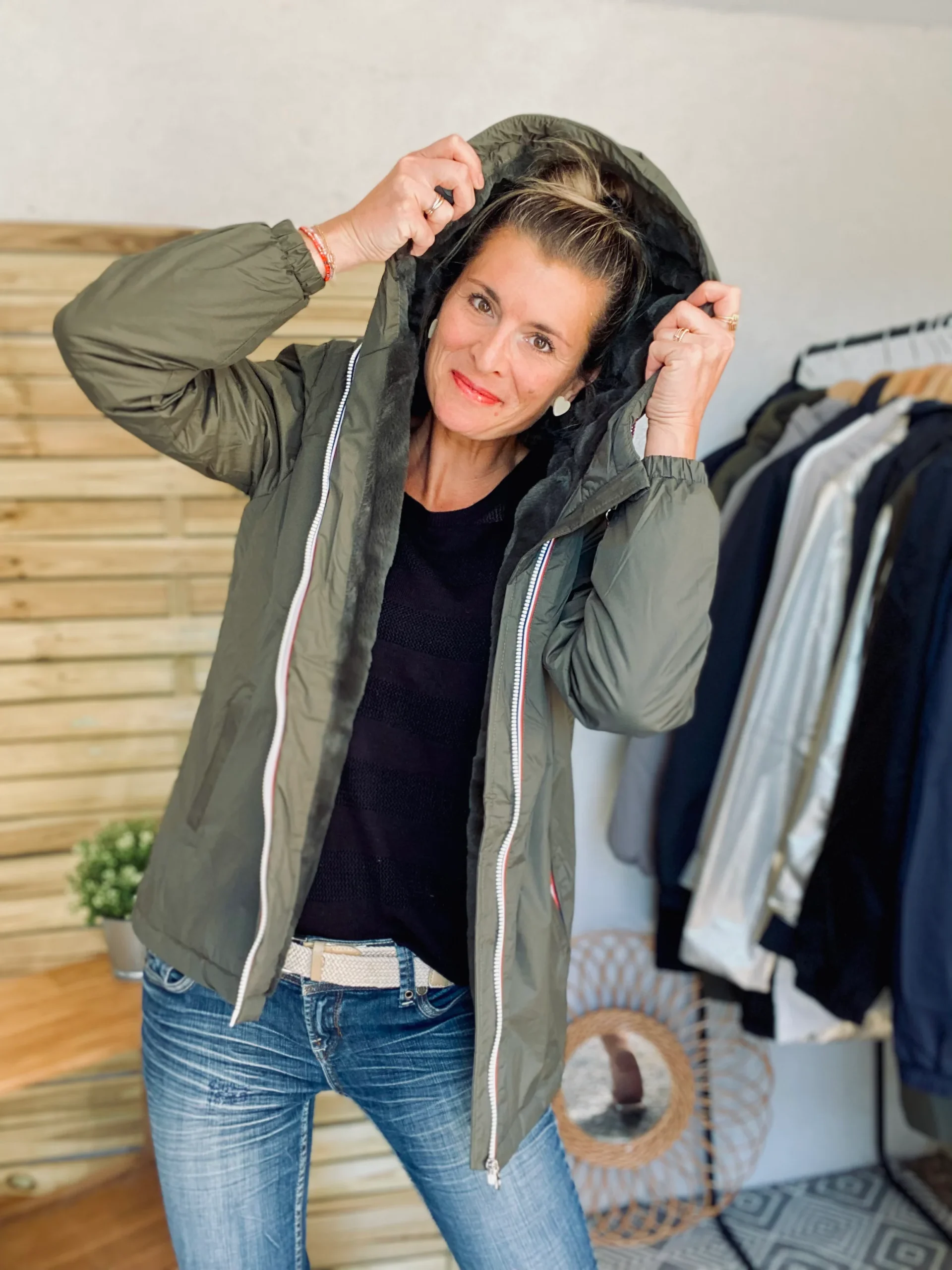 Parka Imperméable THELMA MI-LONG fourré – Kaki – LAURA JO