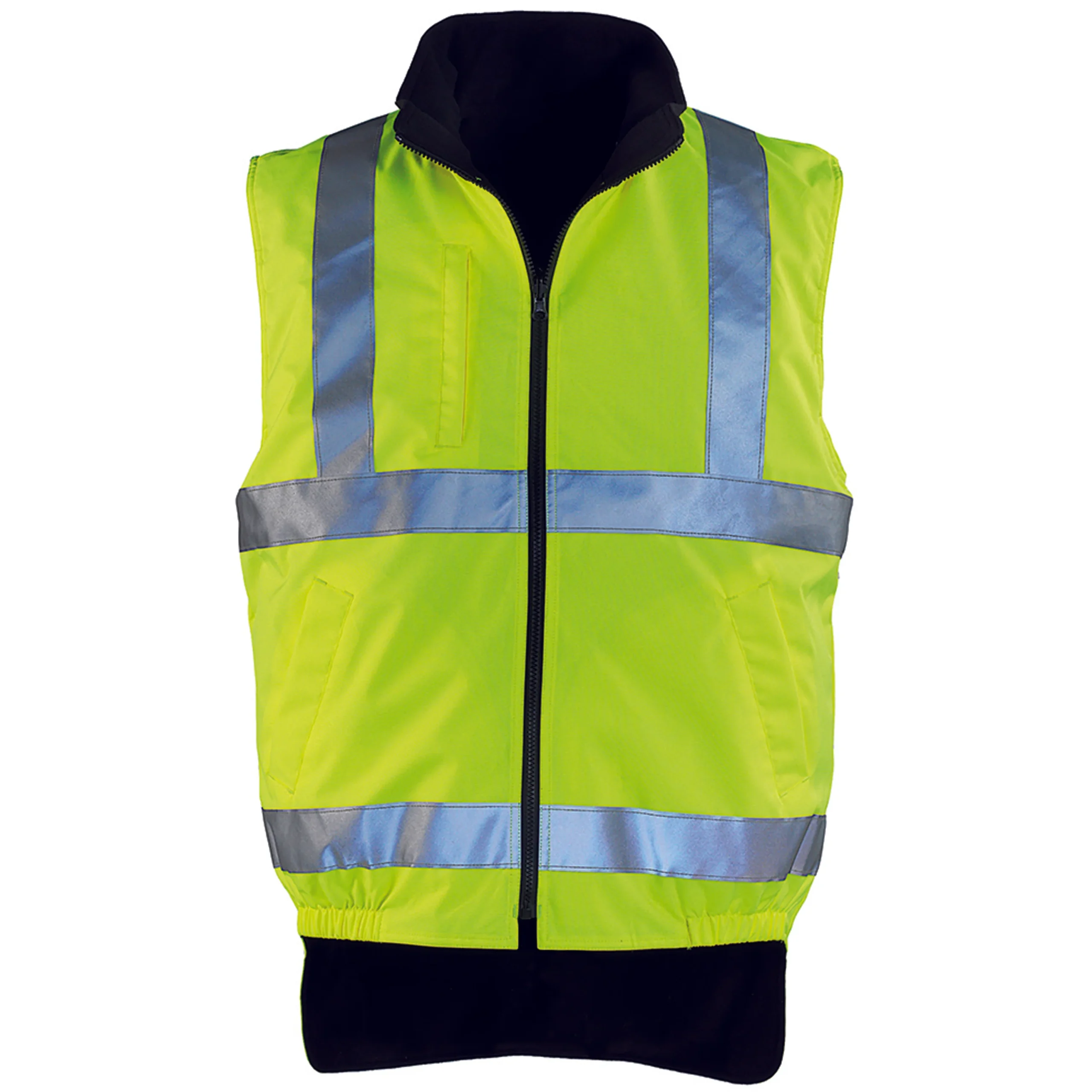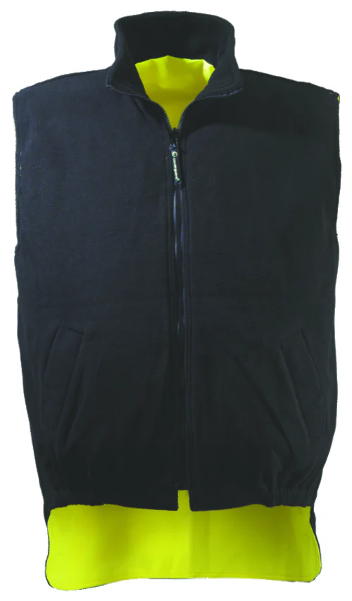Avantages : CONFORT: dos ultra rallongé + polaire sur la face contrastée PRATIQUE: réversible VISIBLE: bandes épaules pour être perçu penché ou avec une vue de dessus