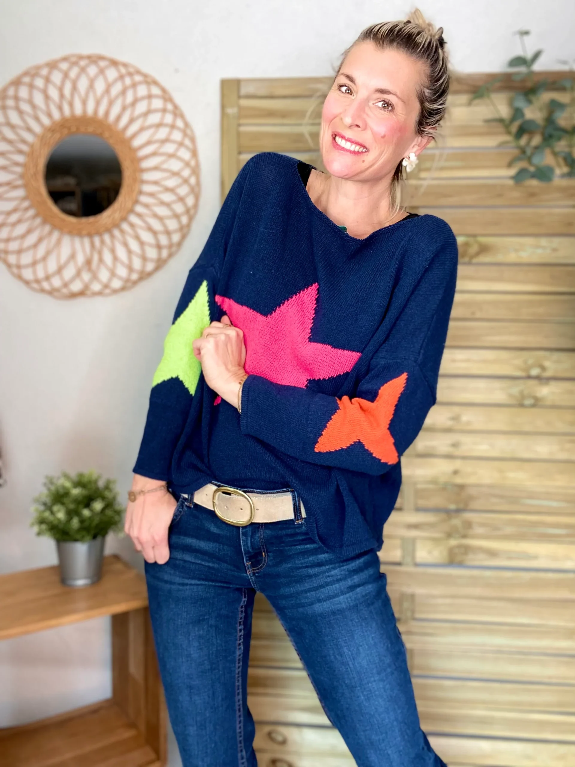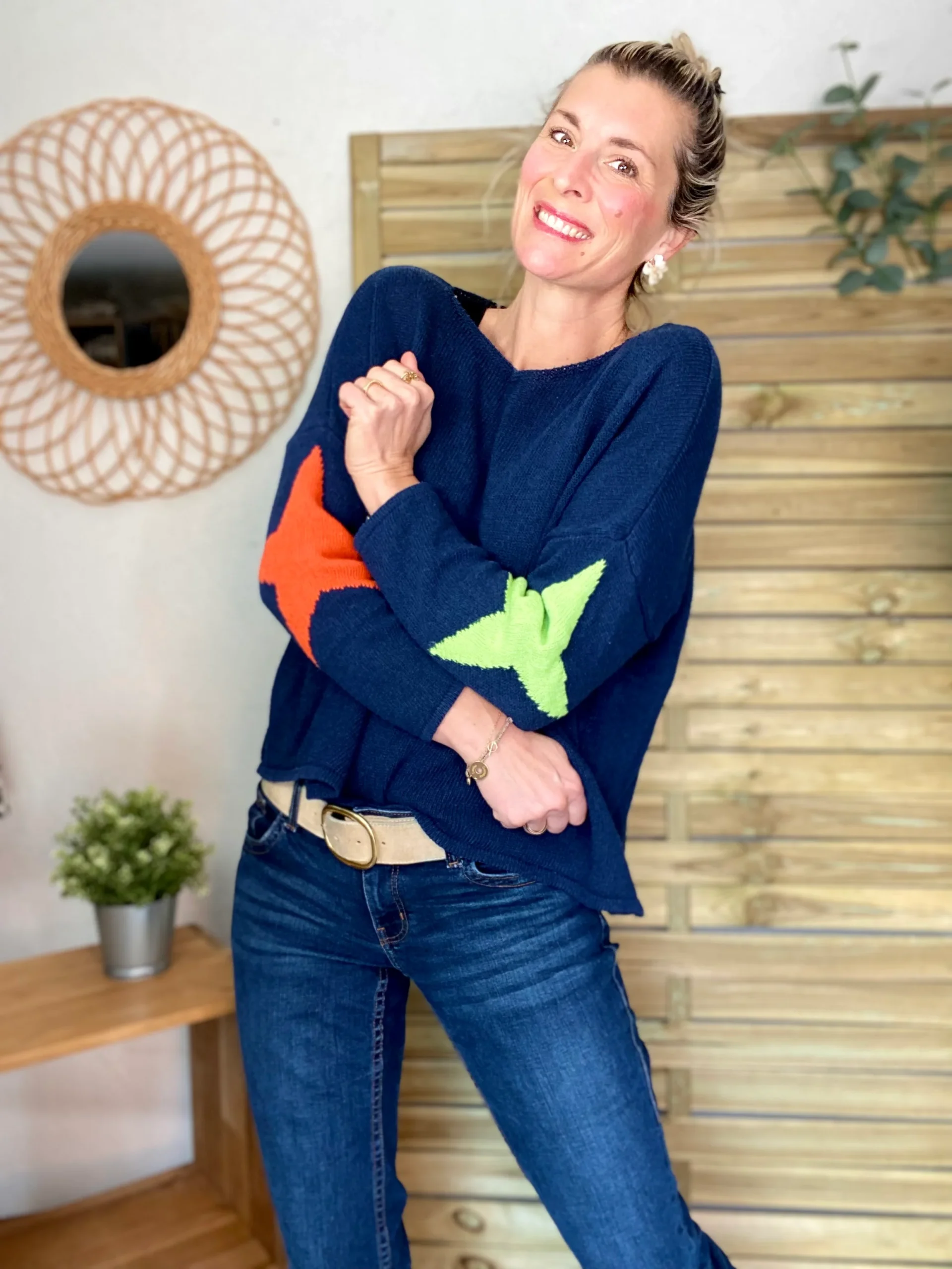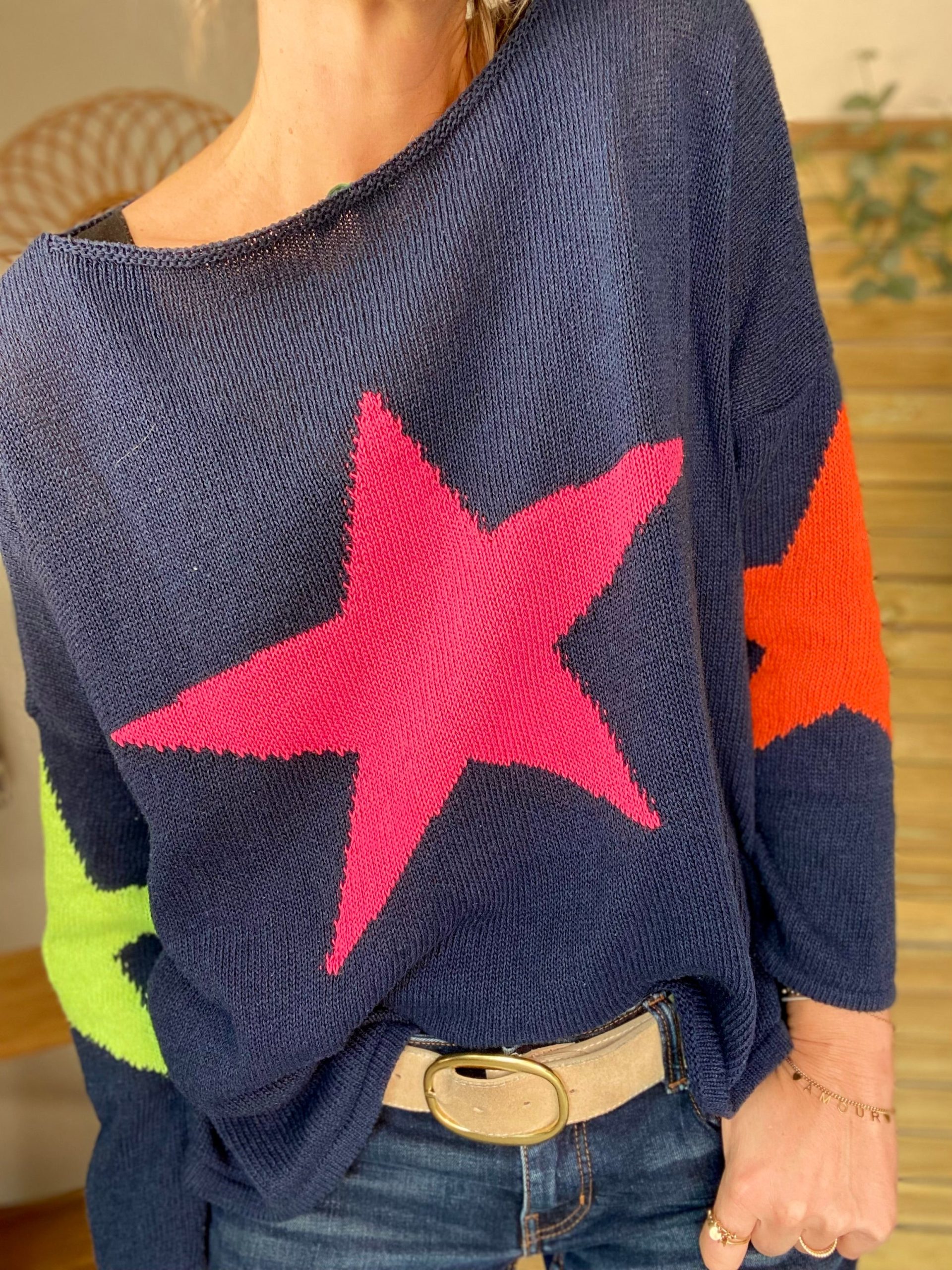 Pull oversize étoiles colors ALBA – Bleu marine