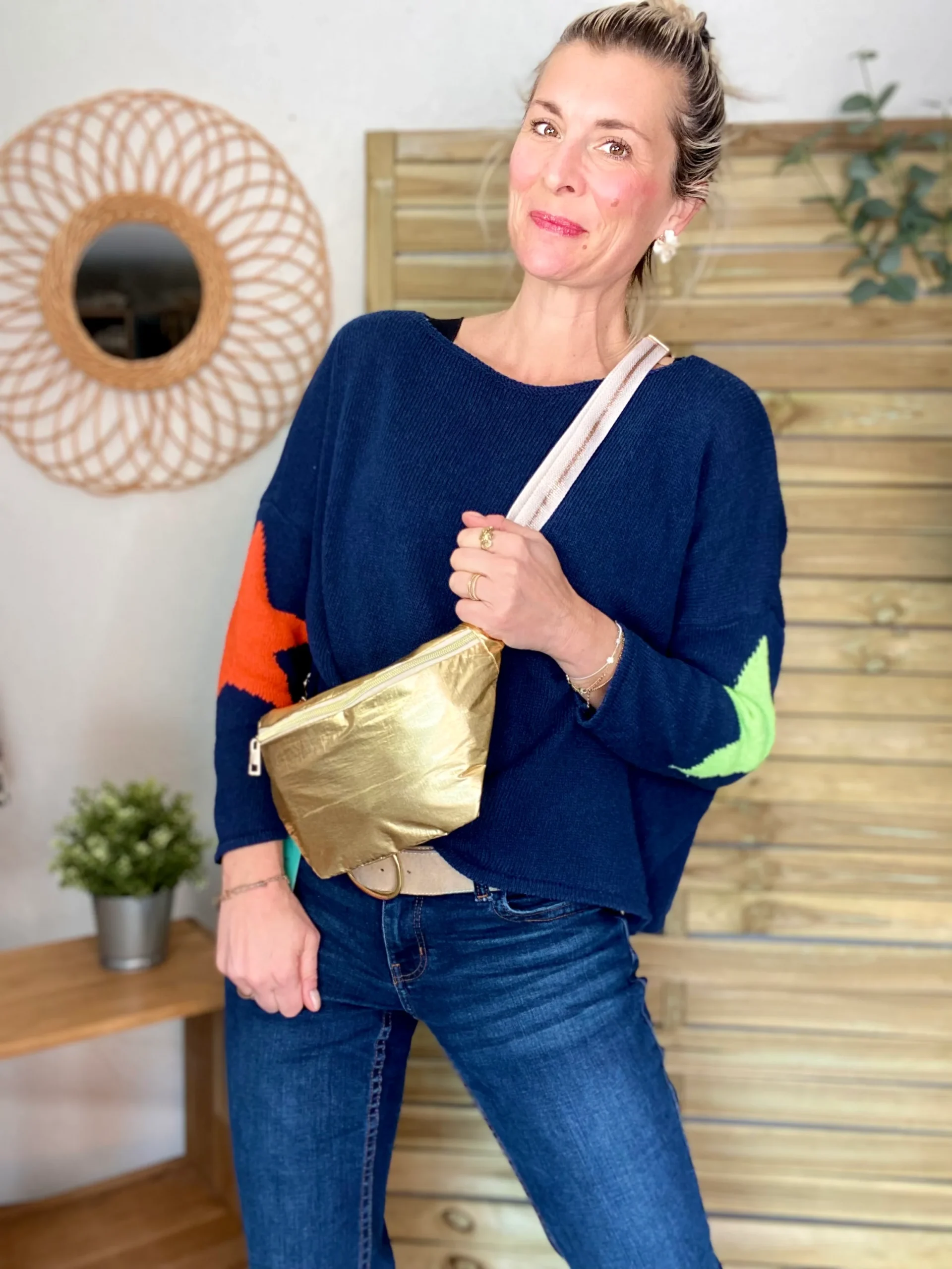 Pull Oversize col V étoiles doré ⭐️ ALMA – Bleu marine – SOLDES