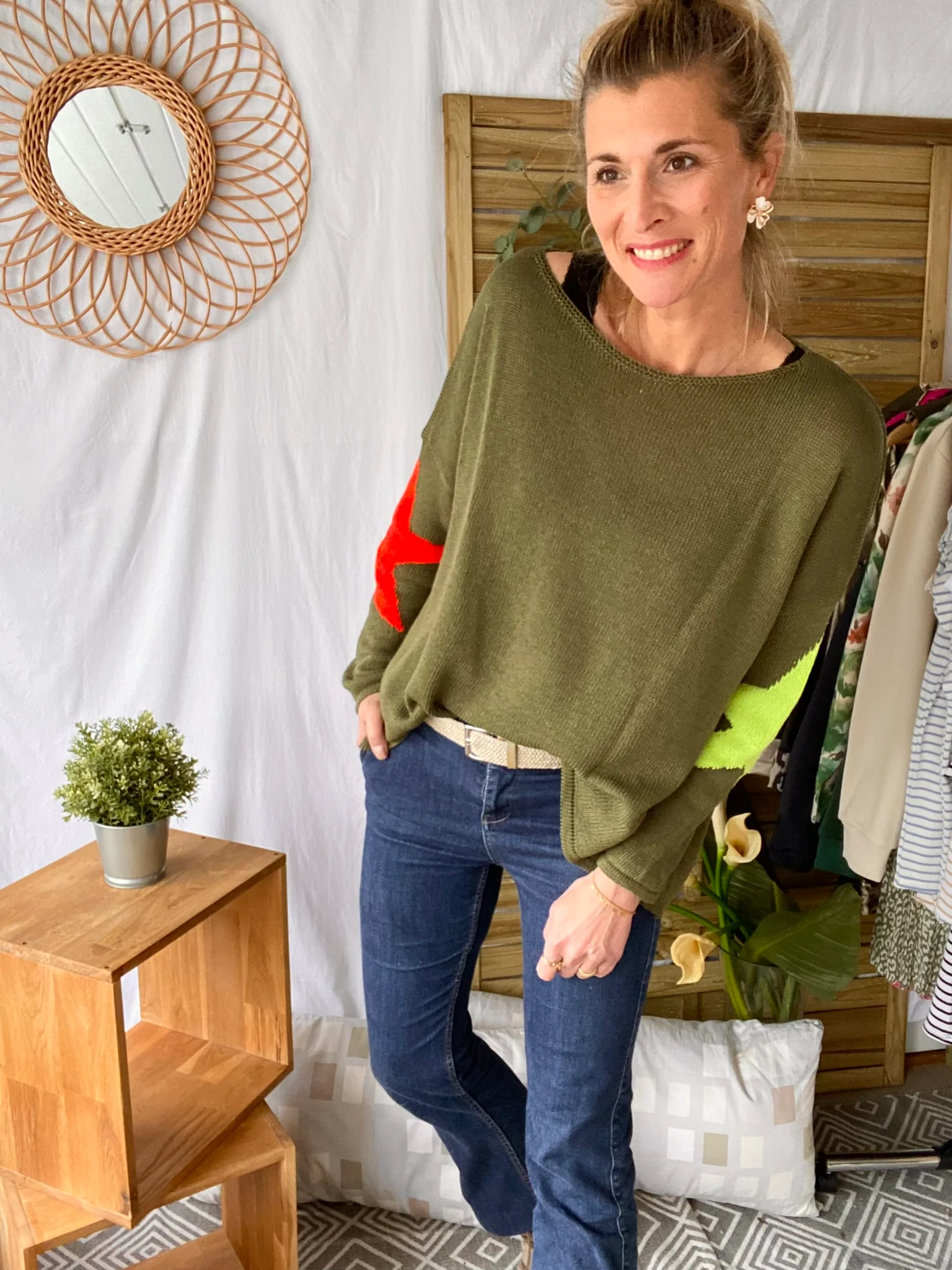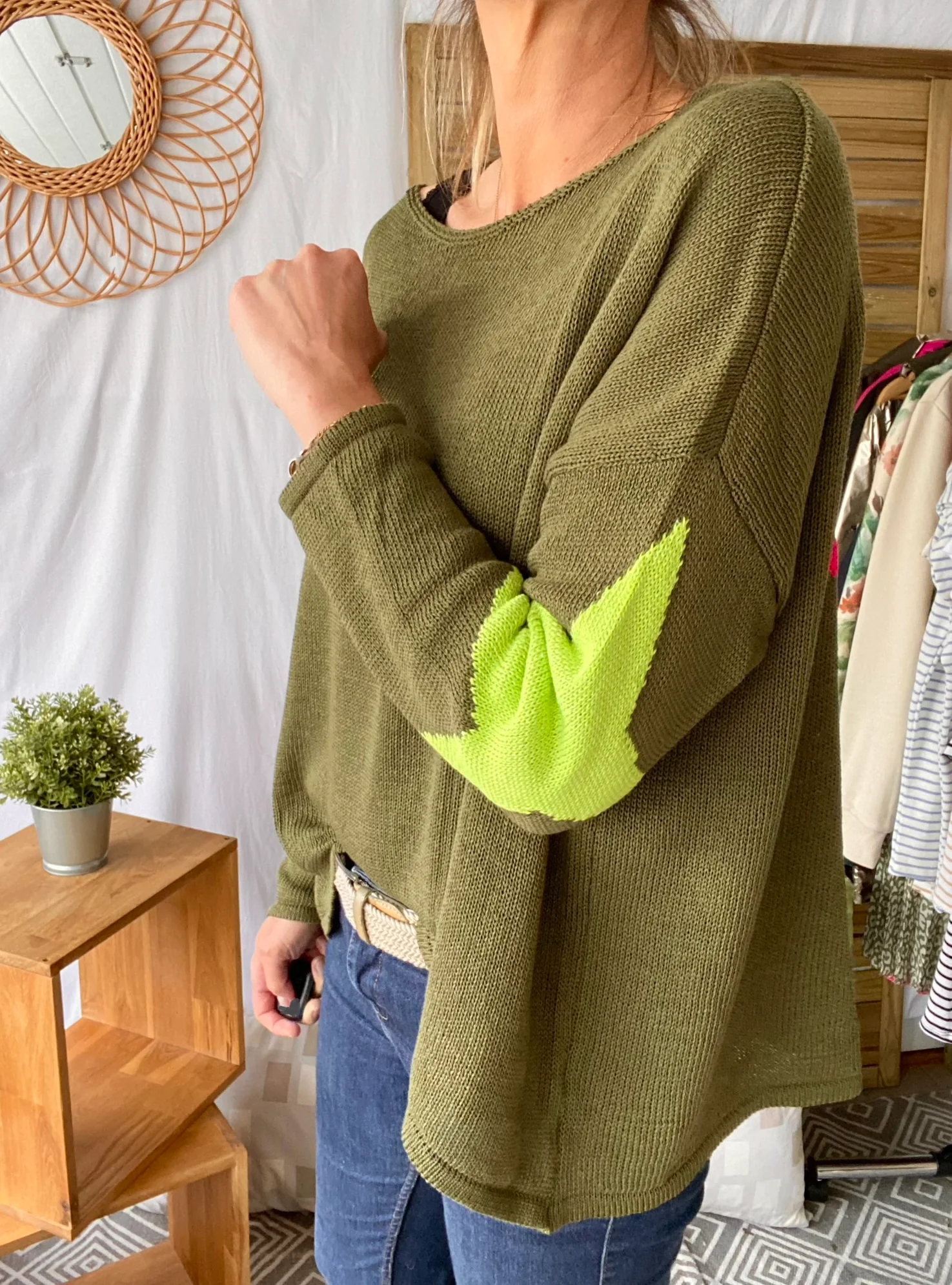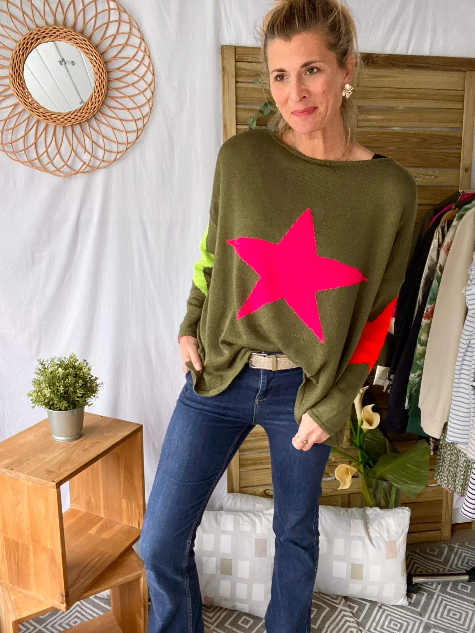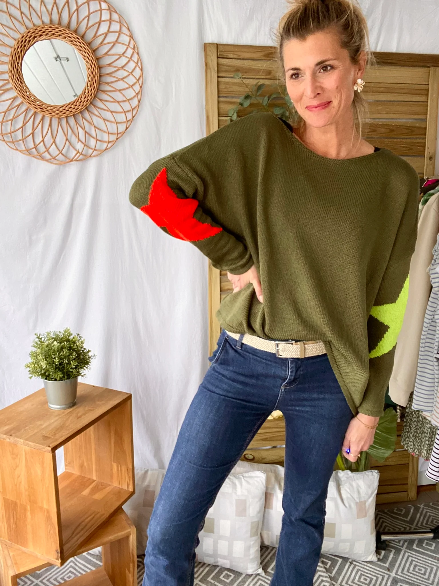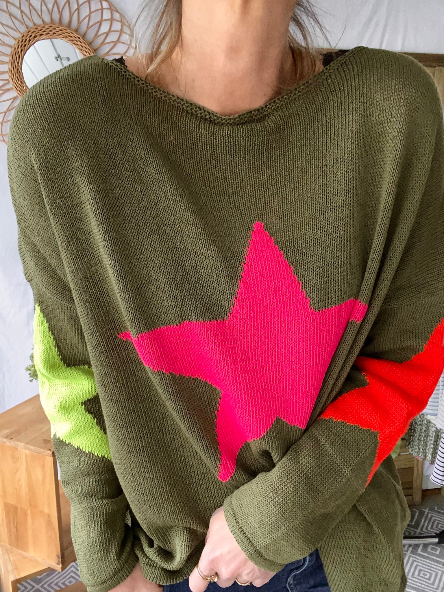 Pull oversize étoiles colors ALBA – Kaki