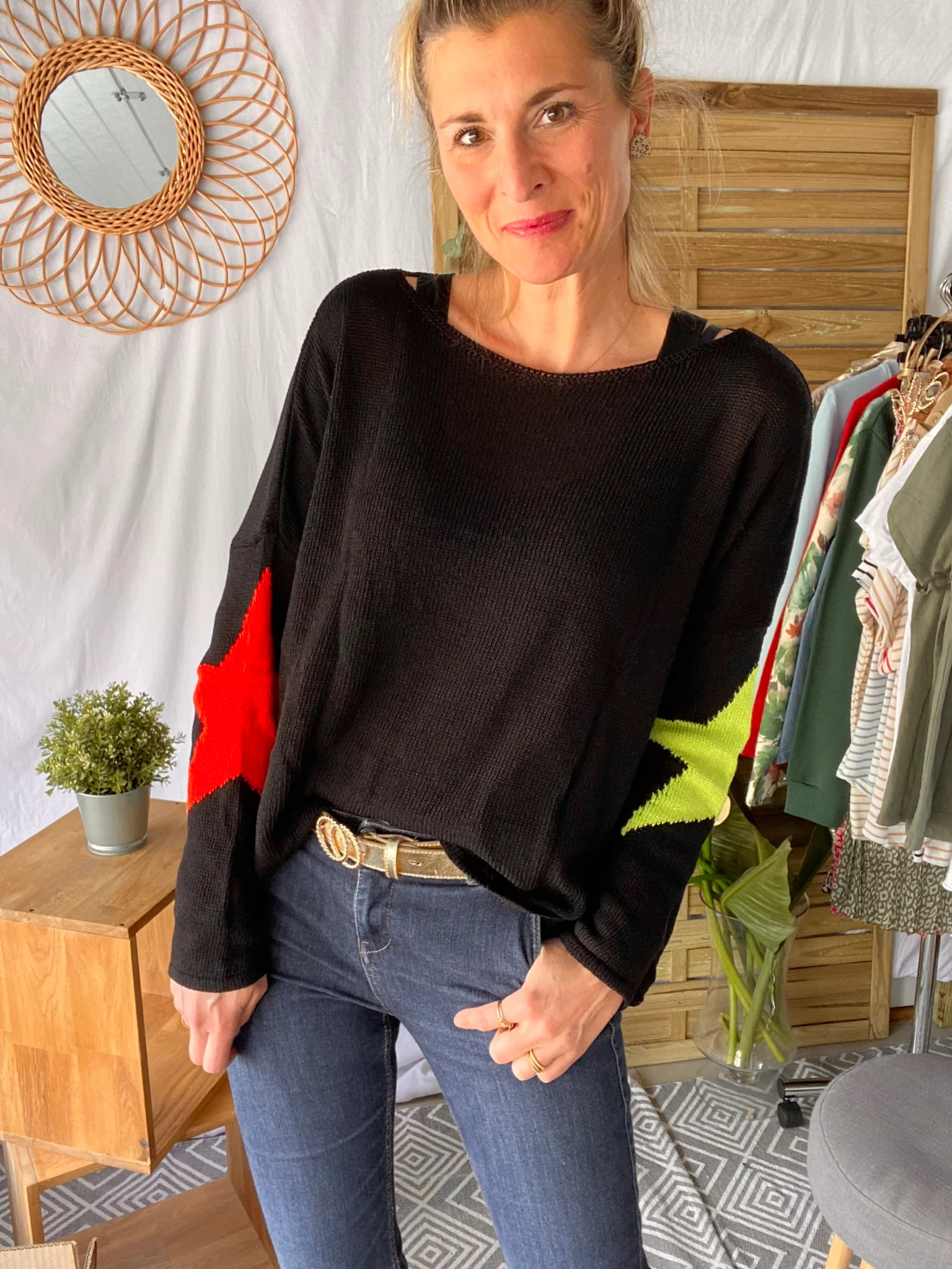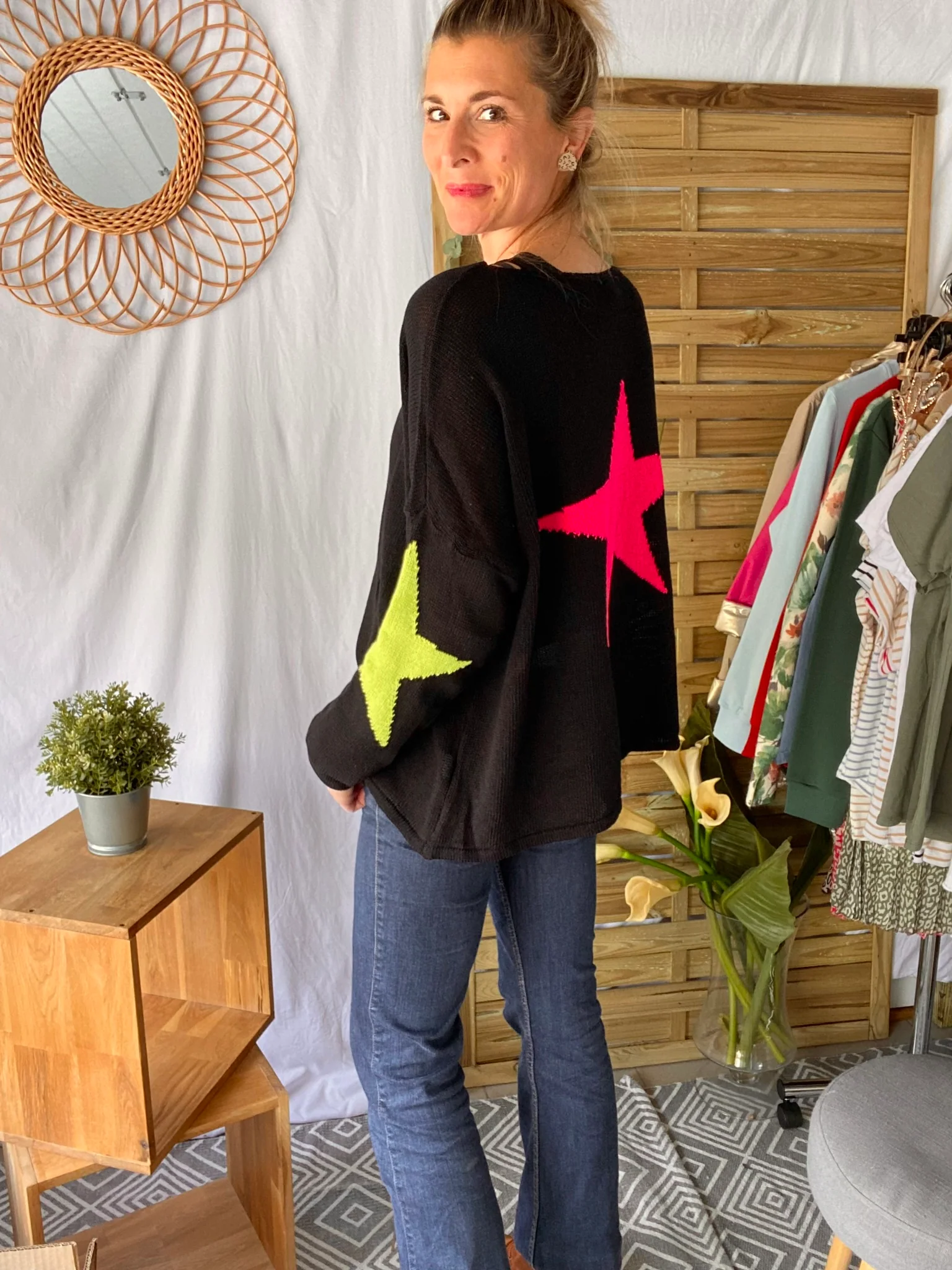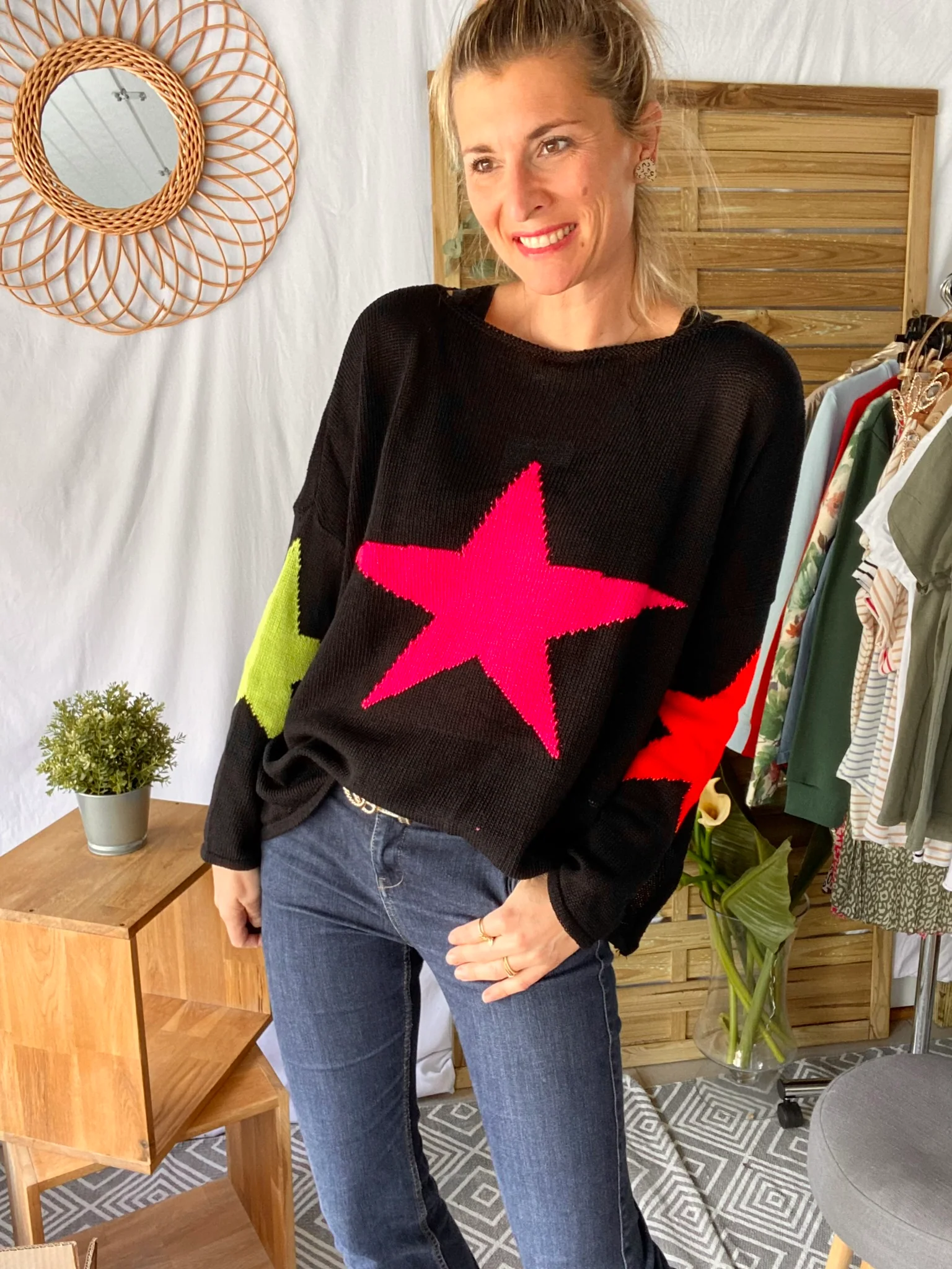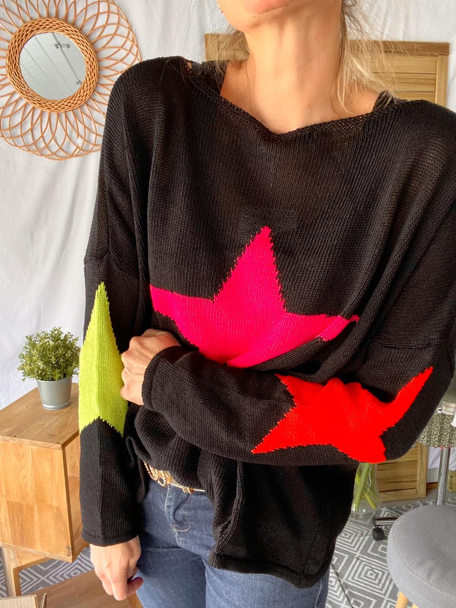Pull oversize étoiles colors ALBA – Noir