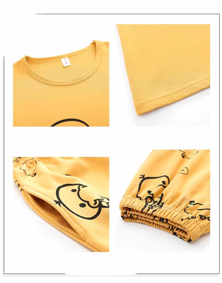 Voici pour vous un pyjama avec canard jaune qui vous fera sourire. Le pyjama est en 2 pièces avec un col rond. Ce pyjama tout en coton, sera un bon compagnon pour vous au quotidien. Pensez aussi à l’offrir à un ami pour les fêtes à venir. La couleur jaune vif et lumineuse donne une touche de gaieté à ce pyjama, qui se démarque des autres. Le motif de canard jaune apporte une touche de fun et de fraîcheur à votre look. Les poches latérales sont pratiques pour ranger vos objets personnels.