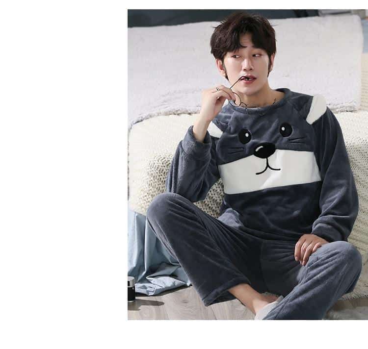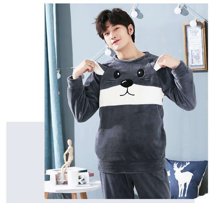 Pyjama avec tête de chat pour homme