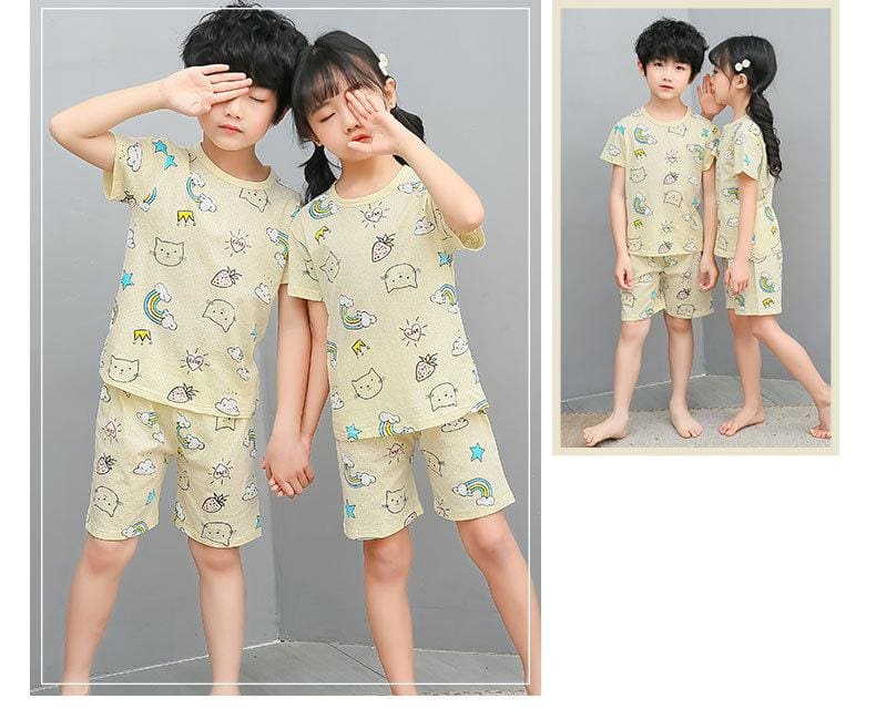 Ensemble pyjama d’été en coton motif chat pour enfants