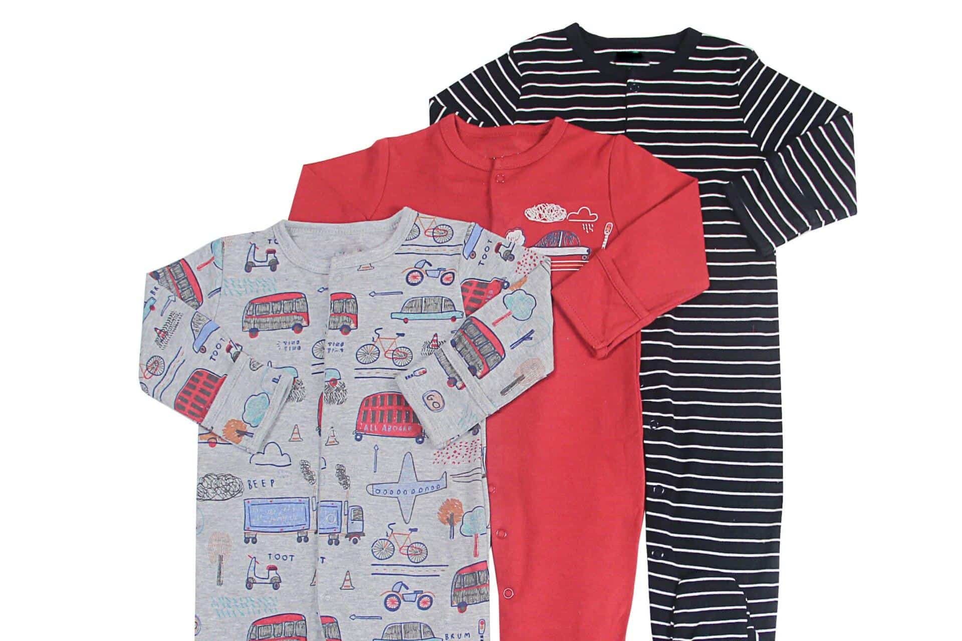 Pyjama combinaison 3 pièces à motif véhicules et rayures pour bébé