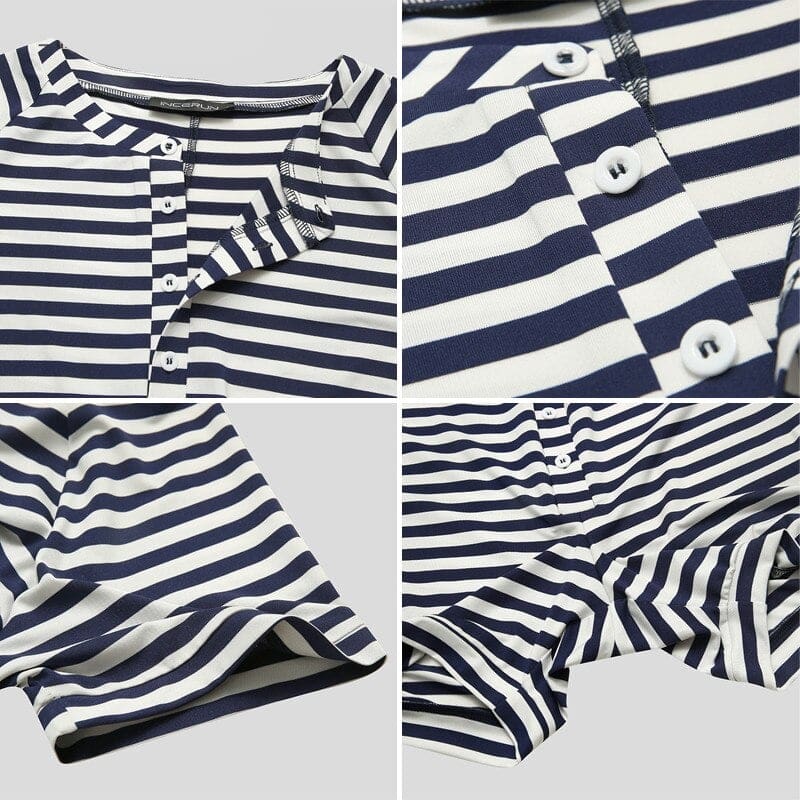 Pyjama combinaison rayée à manches courtes pour hommes