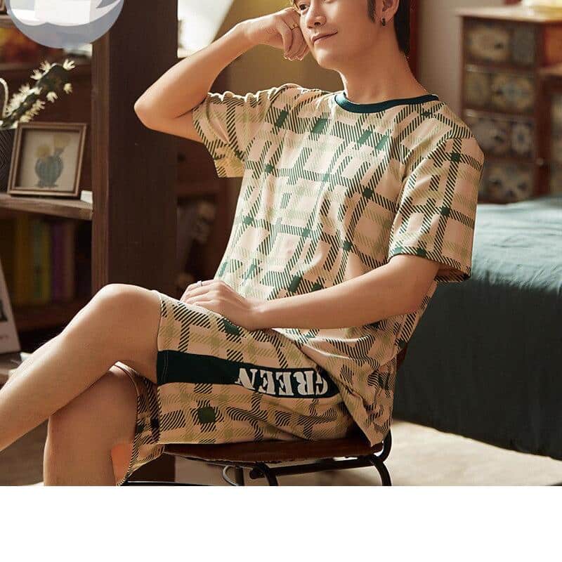 Pyjama d’été carreaux à manches courtes pour homme