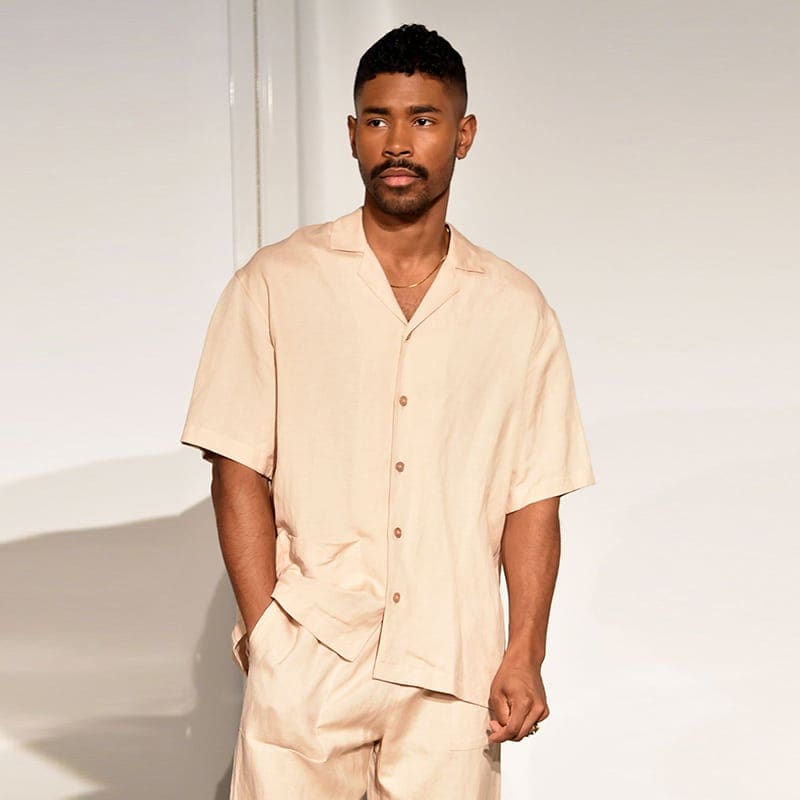 Pyjama d’été homme léger beige avec pantalon et chemise manches courtes