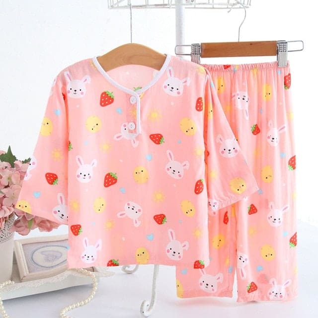 Pyjama deux pièces en coton à motif fraise et lapin pour enfant