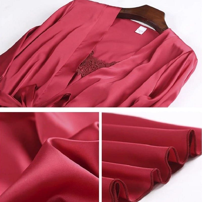 Ce ensemble de nuit en satin de soie procurera le plus grand confort pendant votre sommeil. Offrez-vous un look glamour et élégant, même lorsque vous êtes en pyjama grâce à son col en V qui féminisera votre silhouette et mettra en valeur vos atouts. Disponible en différents coloris, ce pyjama se compose de cinq pièces […]