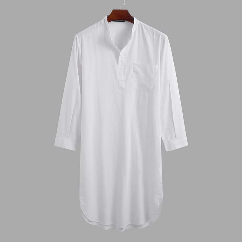 Ce pyjama pour homme estival se présente sous la forme d’une robe de nuit en blanc, en coton très doux et permettant une respirabilité optimale. La coupe ajustée et les manches longues vous offrent une grande mobilité et le tissu léger permet à votre peau de respirer pendant votre sommeil. La coupe est décontractée et lâche.