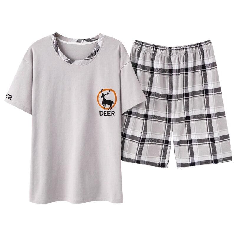 Pyjama t-shirt et short à carreaux en coton pour hommes