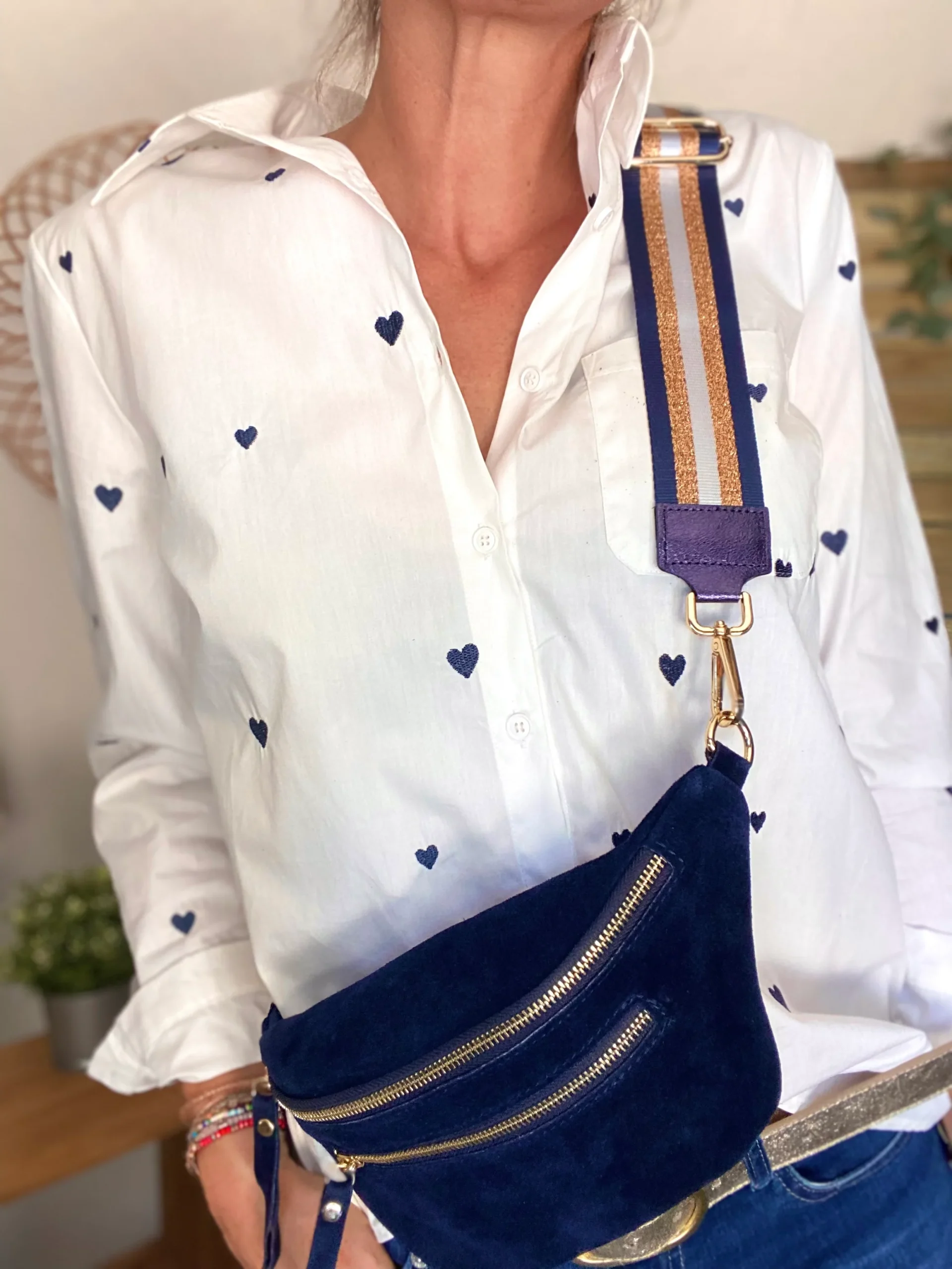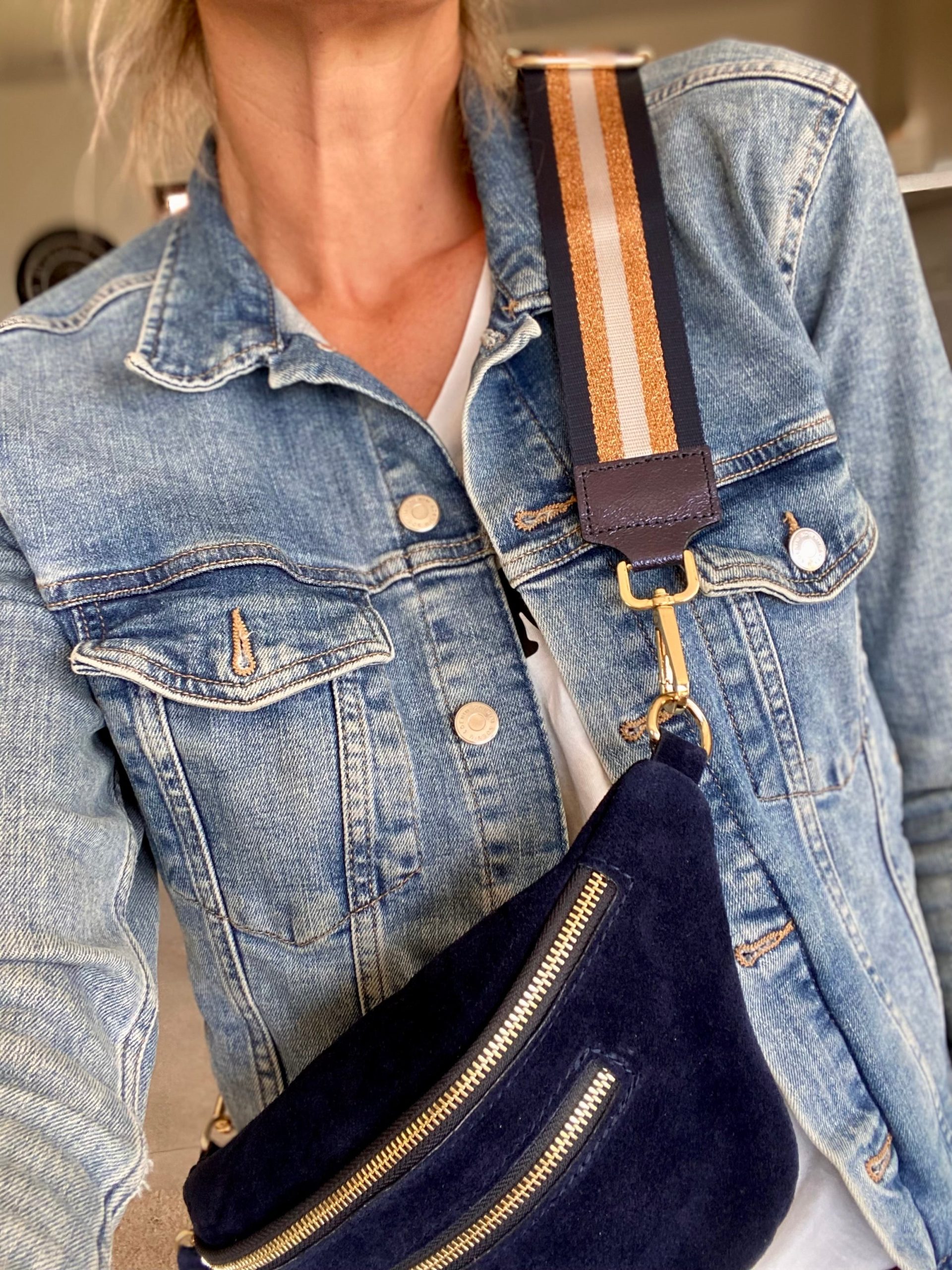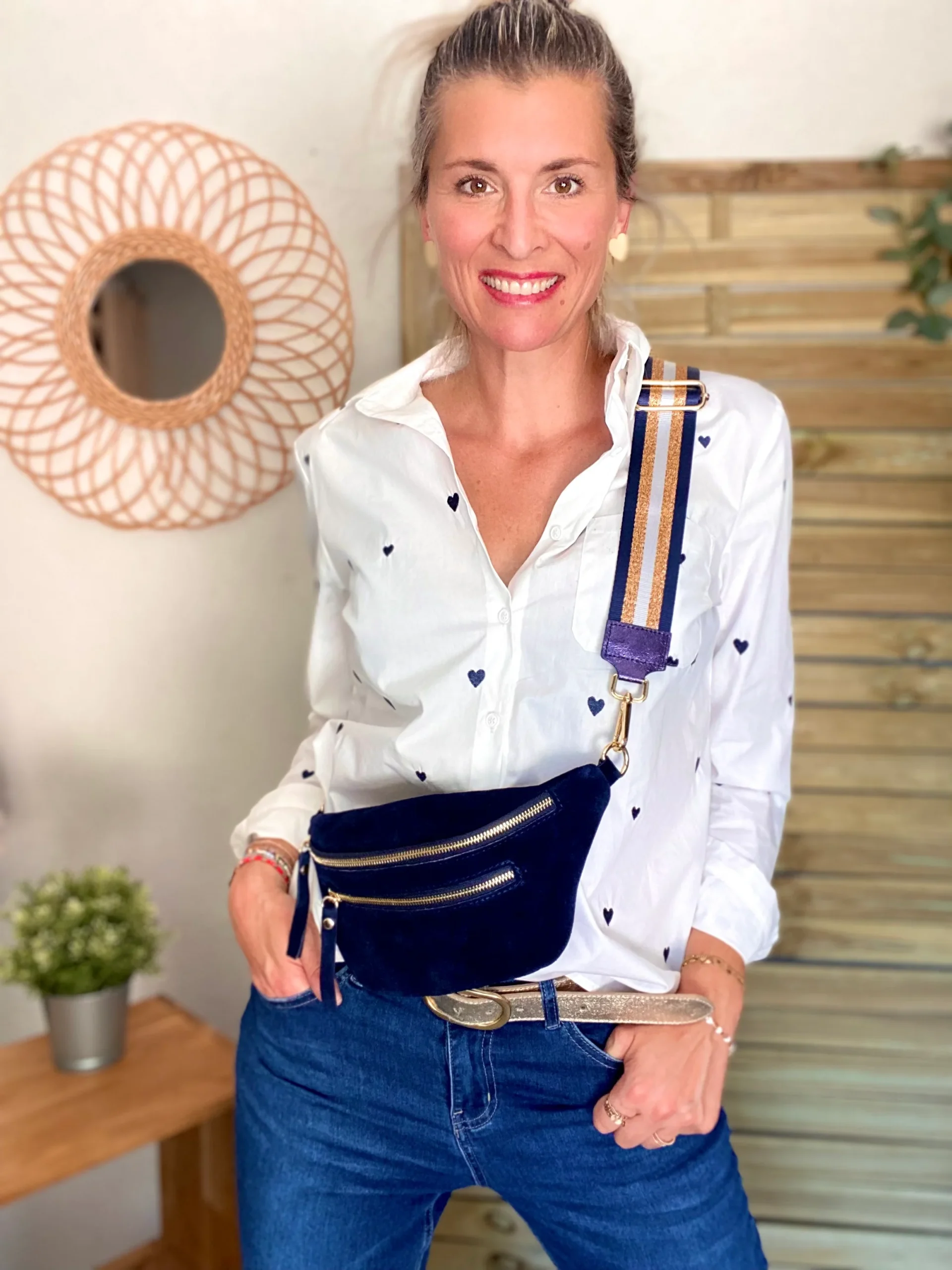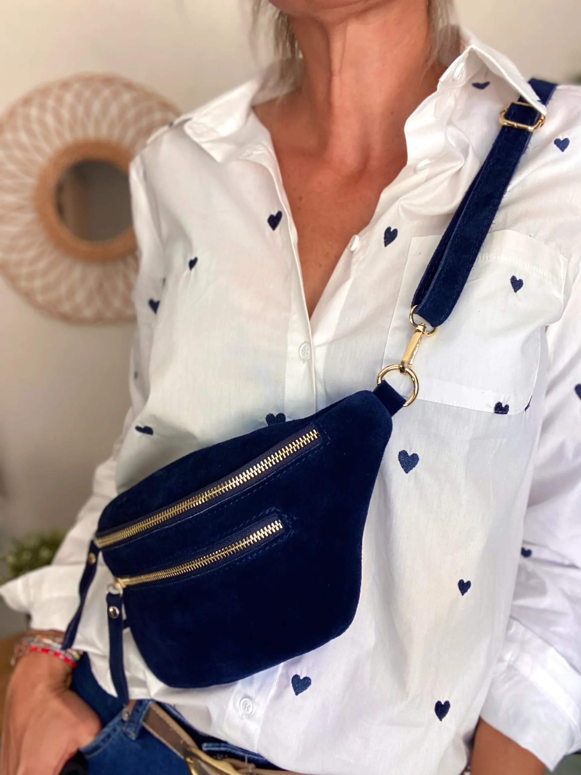 Sac banane avec poche avant, en cuir daim HOLLY – Bleu Marine