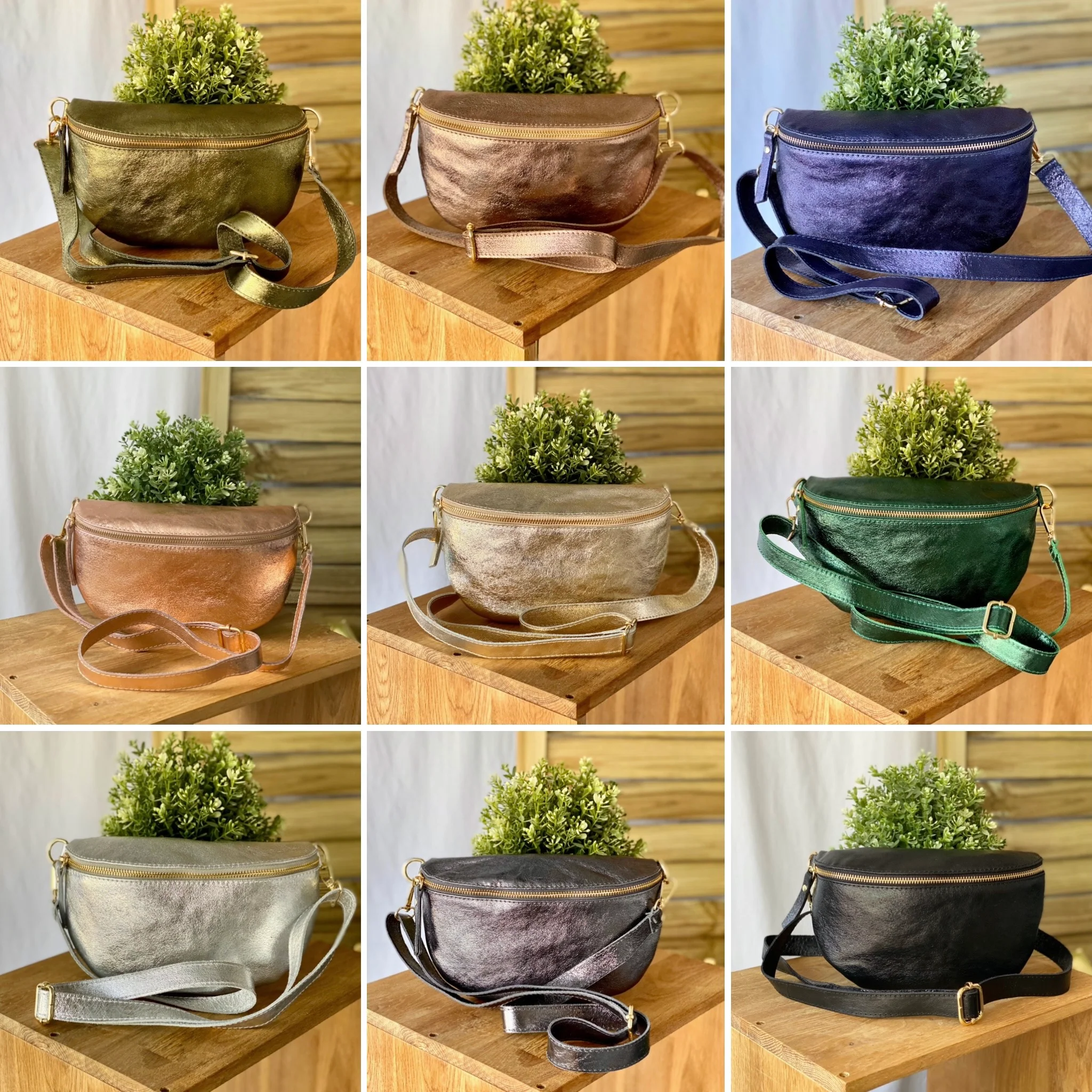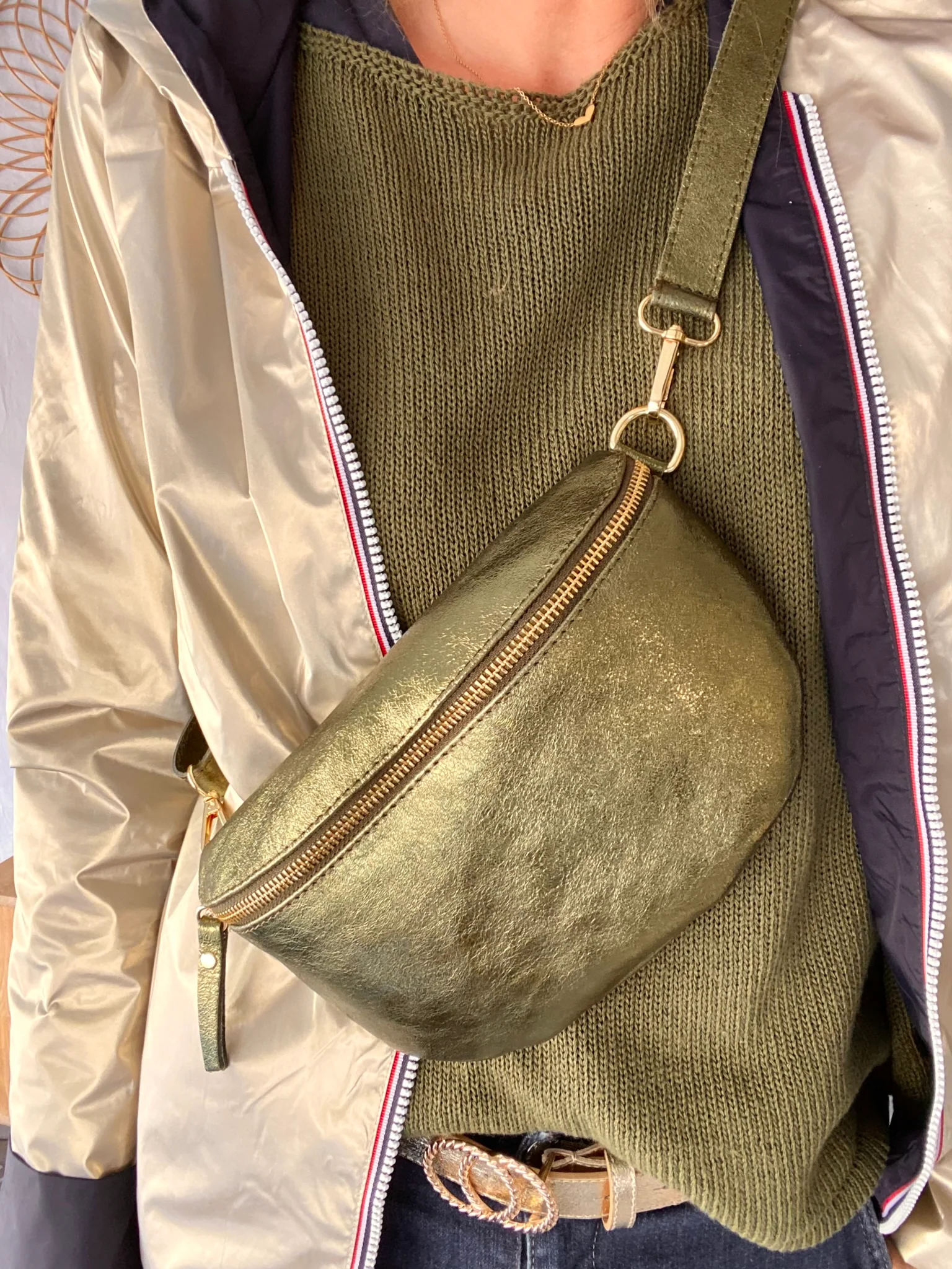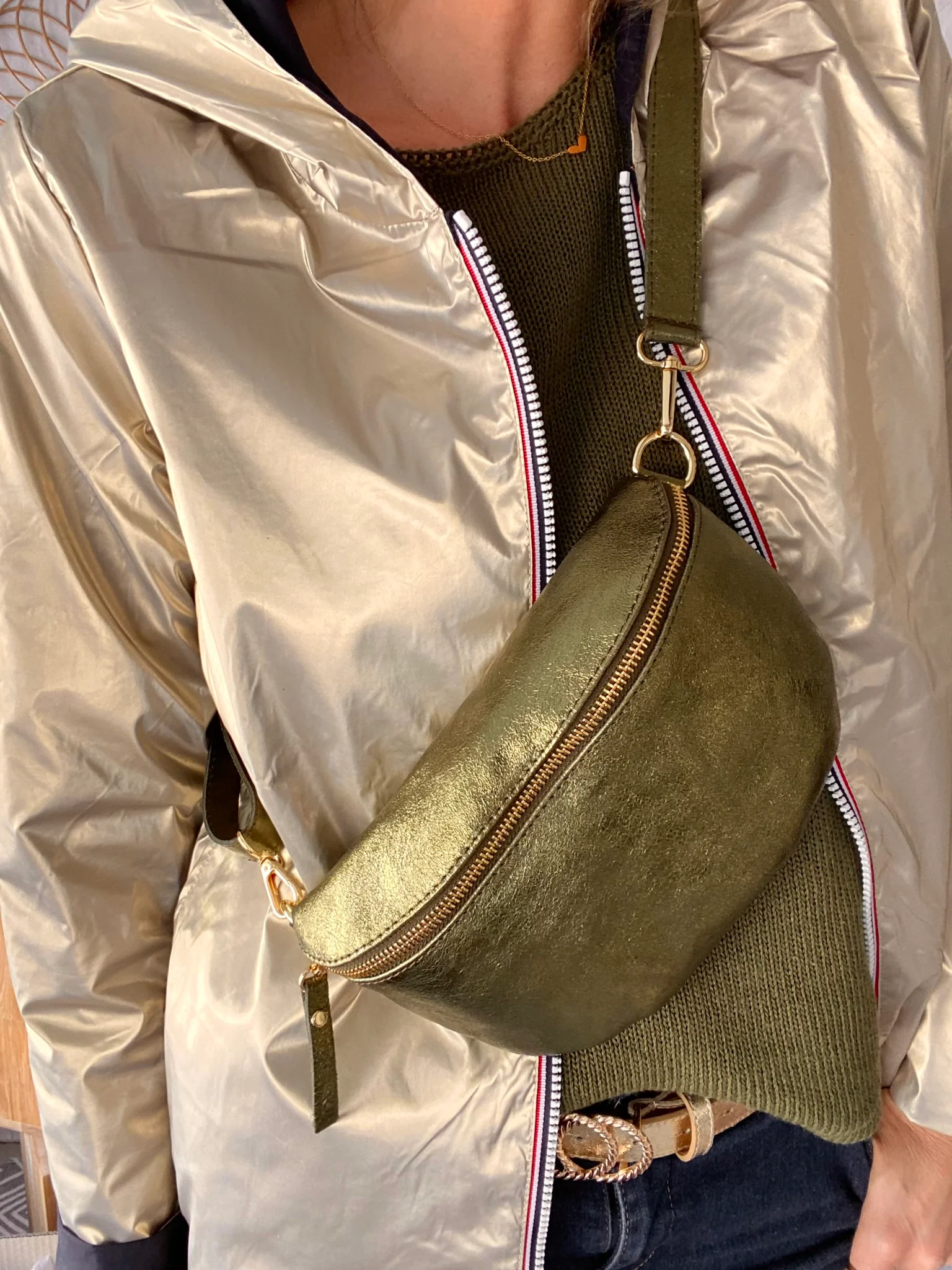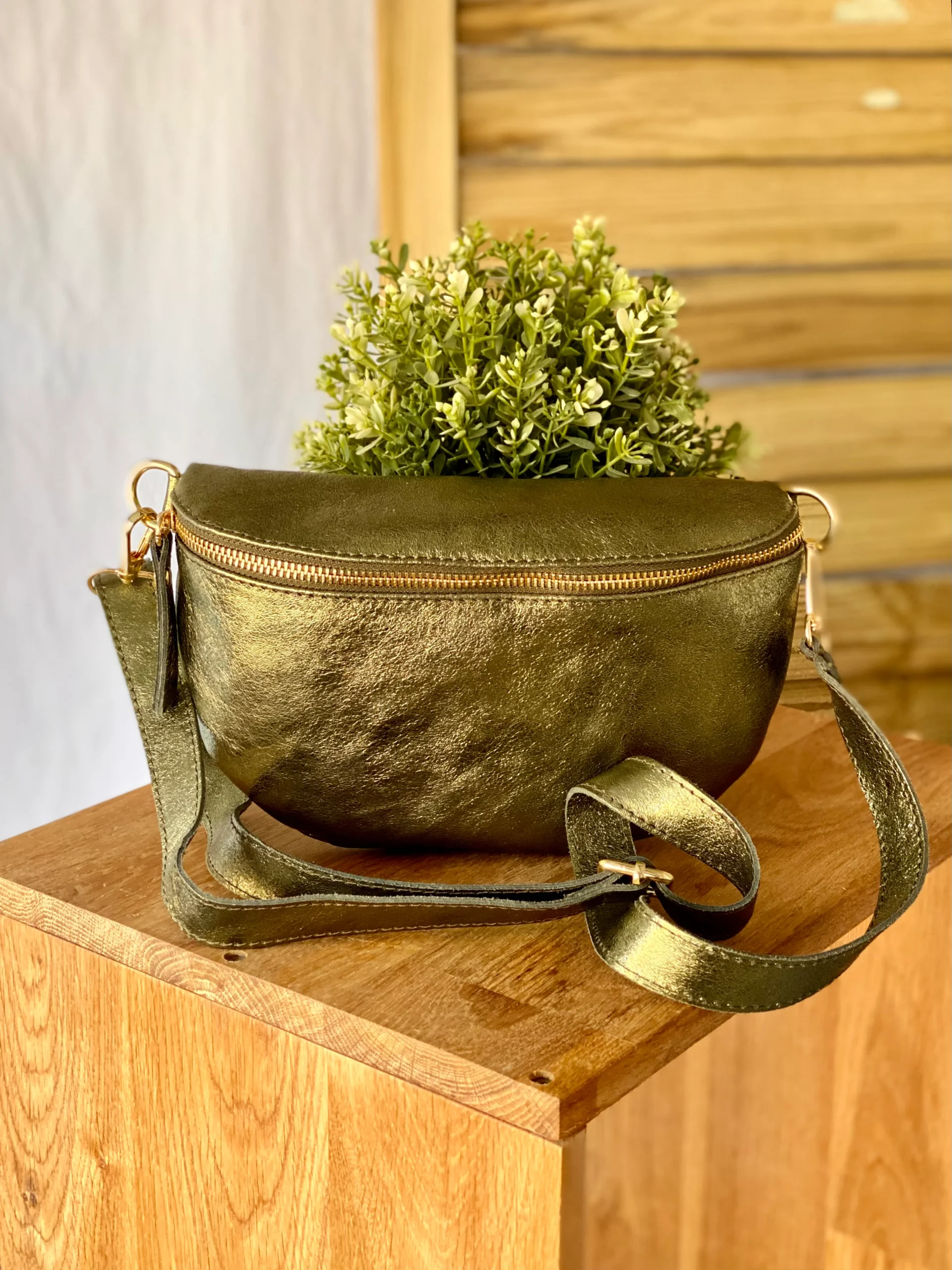 Sac banane M en cuir irisé 24cm ROMY Kaki (12 coloris)