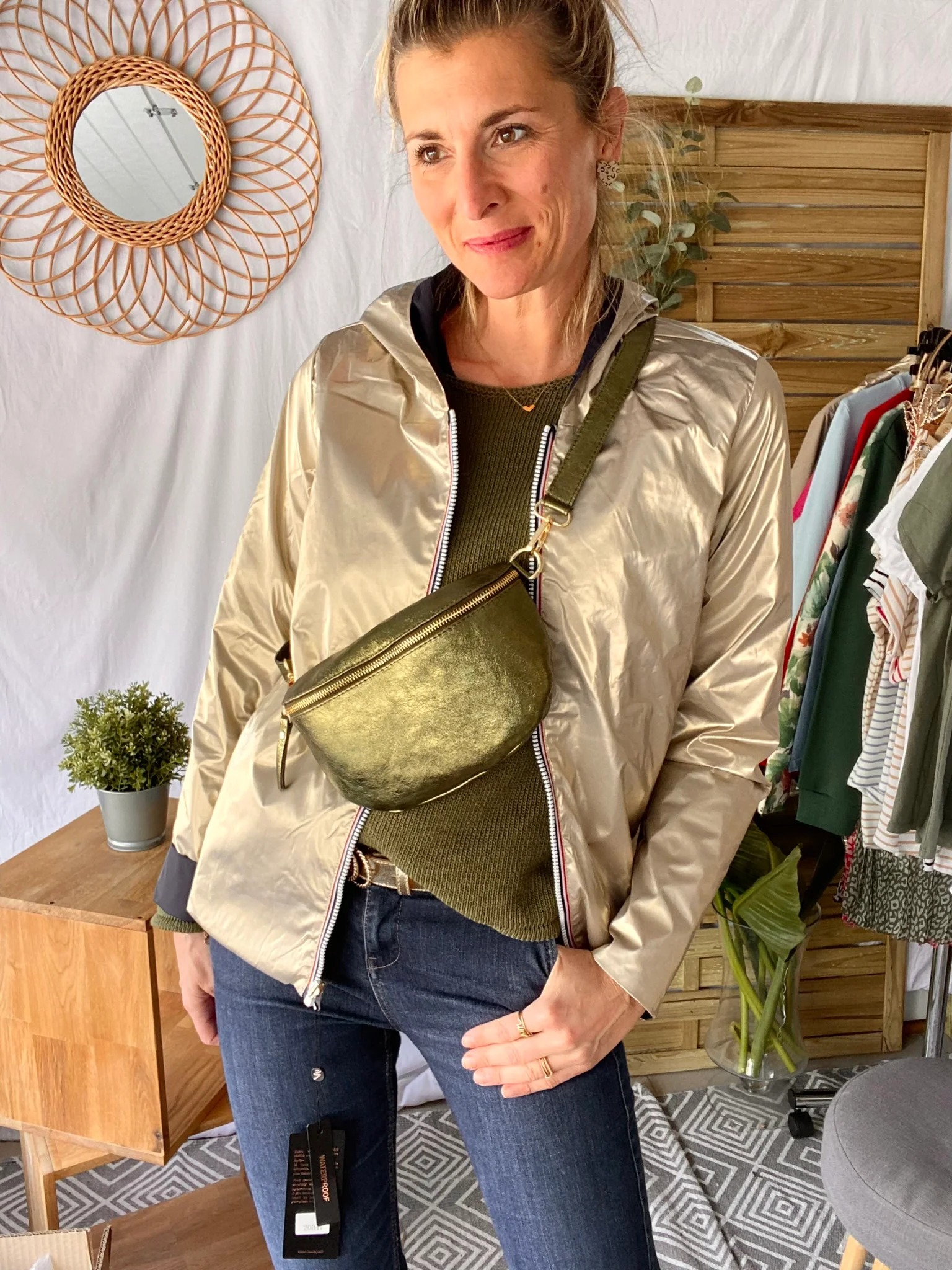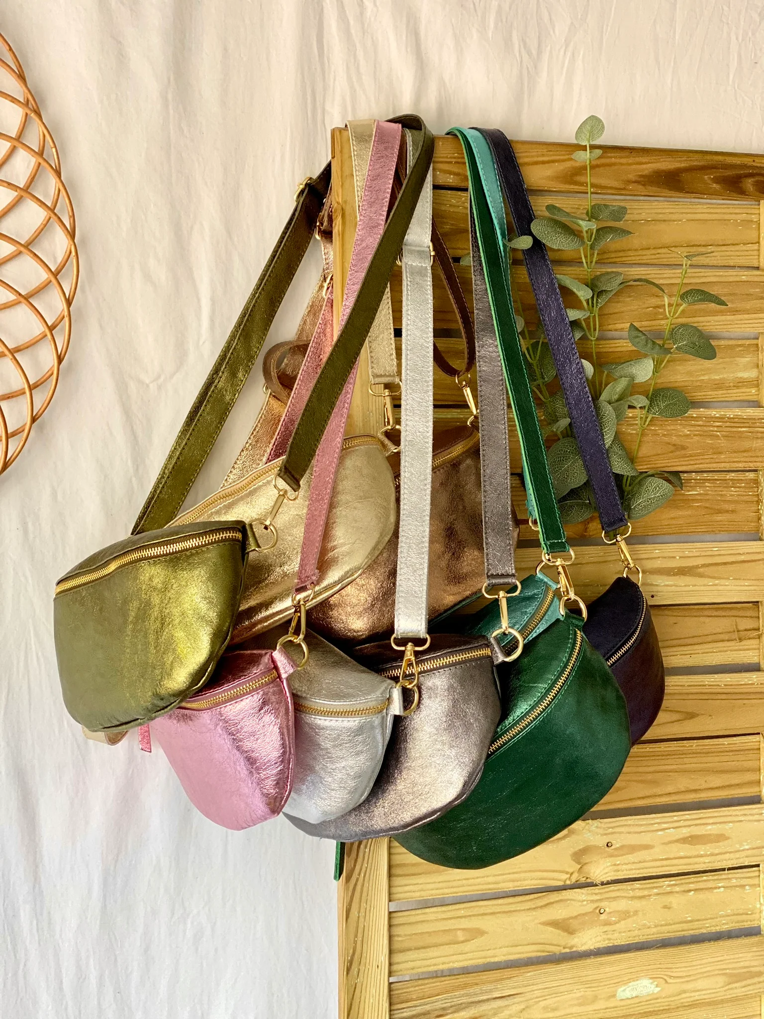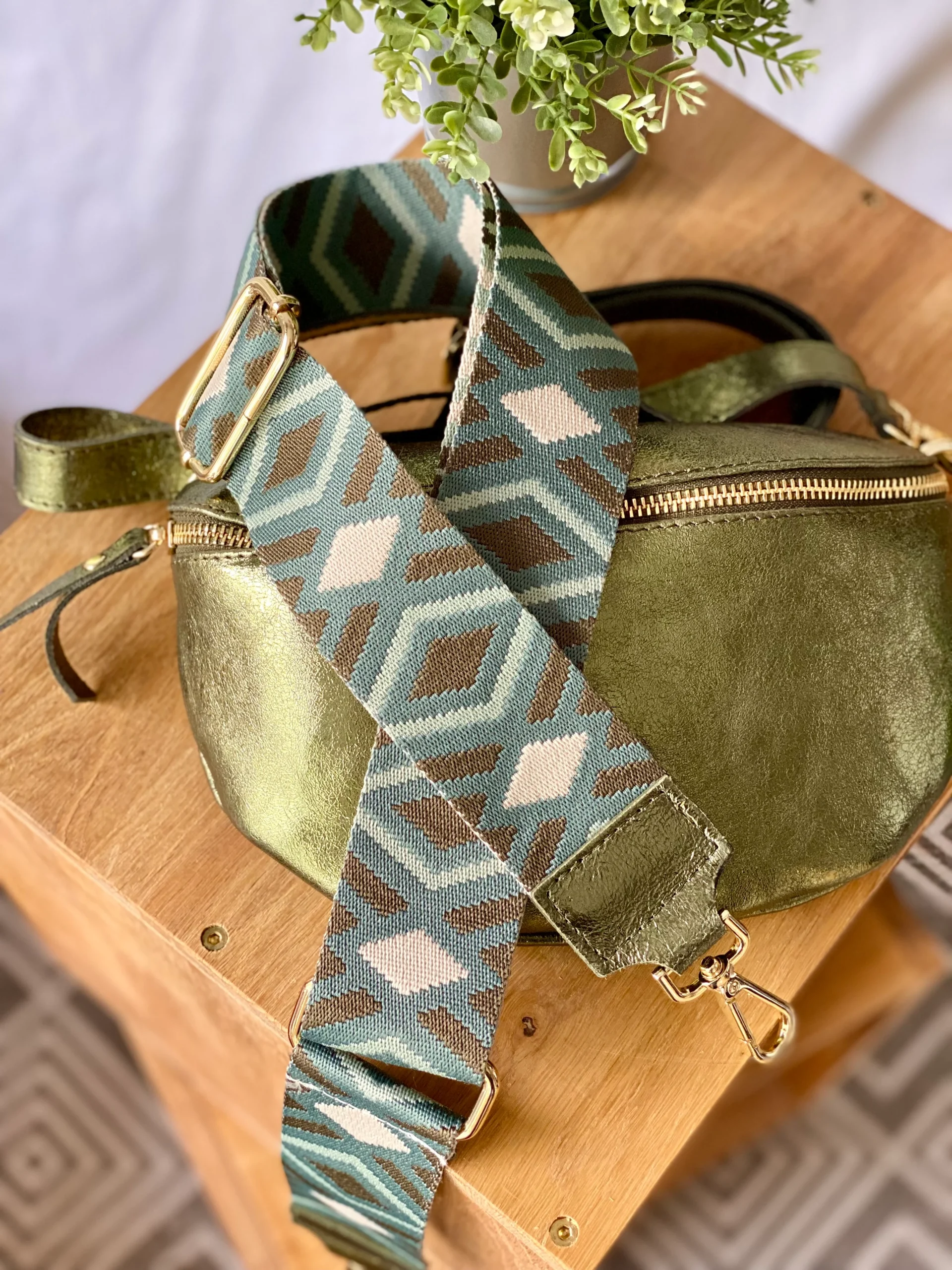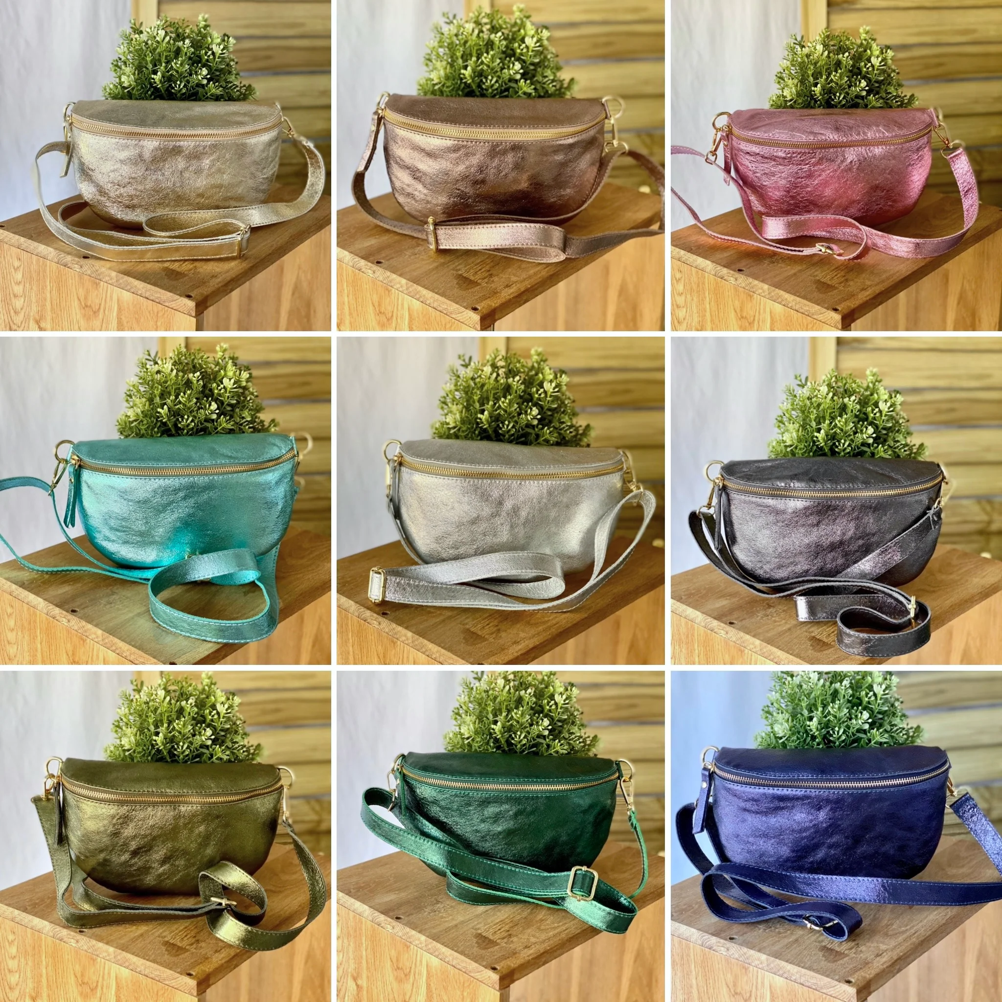 Sac banane M en cuir irisé 24cm ROMY Kaki (12 coloris)