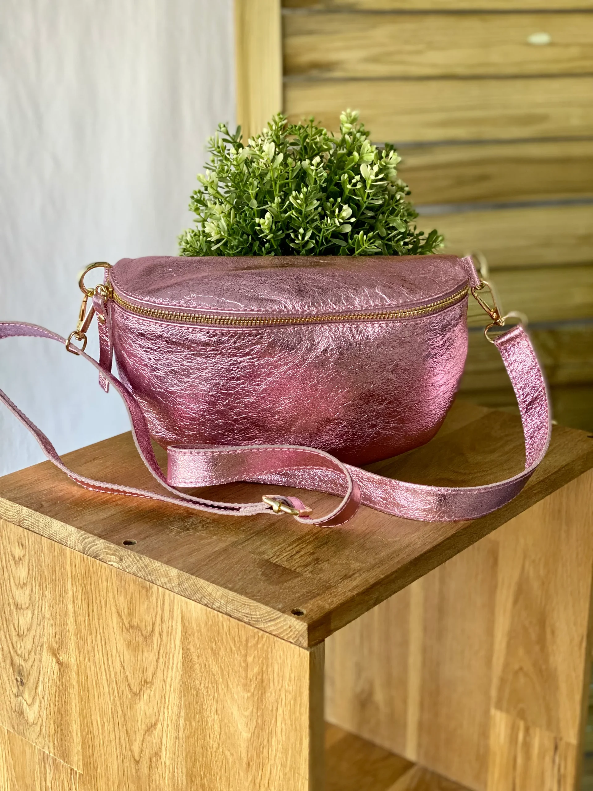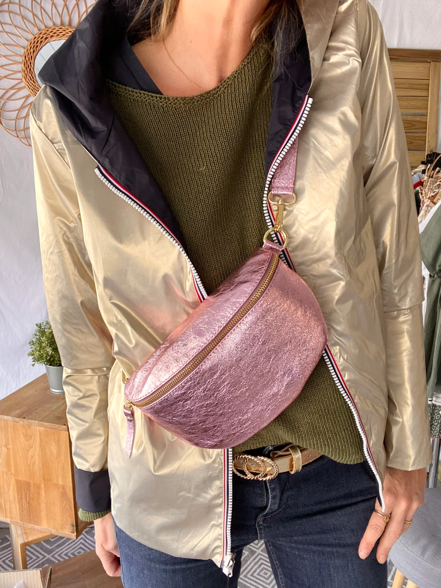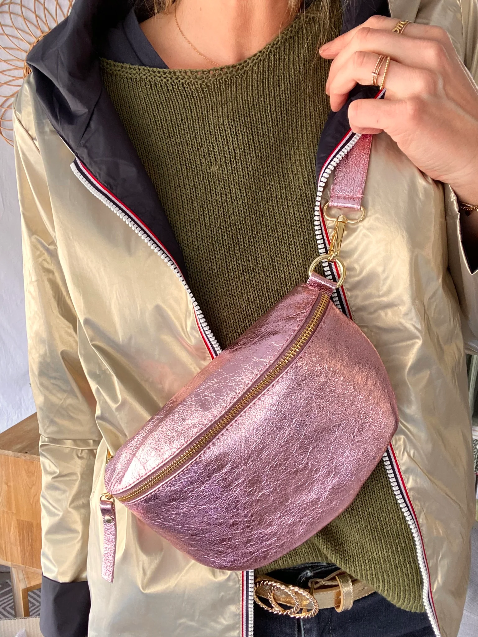 Sac banane M en cuir irisé 24cm ROMY Rose clair (12 coloris)